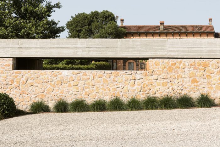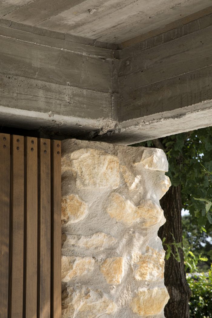 As in many of our works, the materials used have rough surfaces (rough-hewn stone, fair-faced reinforced concrete, brushed wood, rusty iron) to relate expressively to the sunlight, bringing forward the raw authenticity typical of vernacular buildings of the area. This choice constitutes a precise stance and introduces a strong humanization into the project, which is still deeply connected with the place. The architecture is set in its context, seeking a new encounter with the roots of the rural world and a mature and more conscious relationship with nature.
