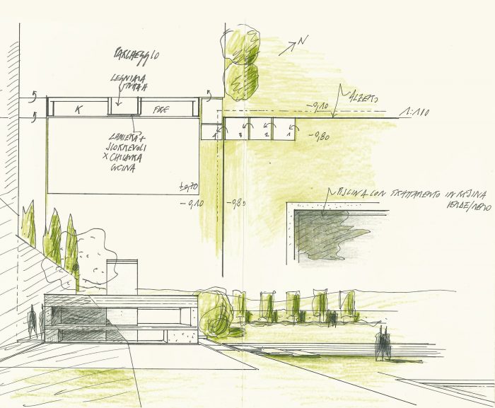 Compared to contemporary life, which is increasingly fast-paced and superficial, the Brolo of the Cantina Gorgo offers visitors a calibrated microcosm where they can rediscover the slowness of their gaze and live a complete, activating experience. The idea behind it is a new journey through Italy that is not nostalgia for something lost, but the search for a sort of cultural anabiosis of the Bel paese. The project also hides the ambition of a new Italian architecture, which could refound the vernacular, freeing it from the picturesque, thanks to a modern expression that is strongly contemporary but also timeless and in continuity with the architecture of our nation.