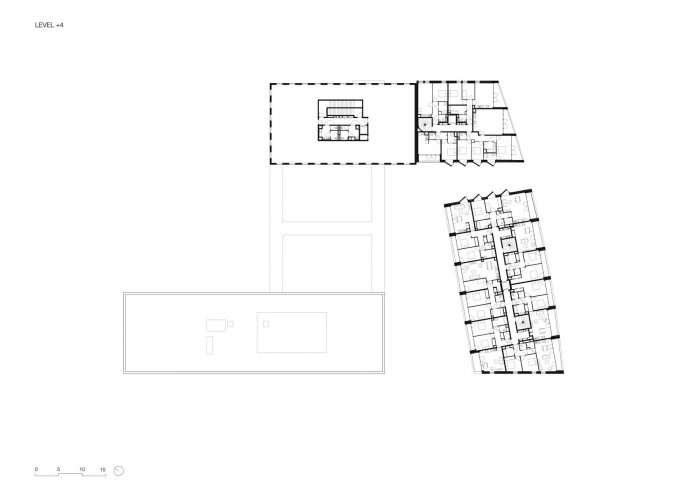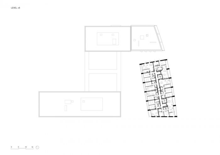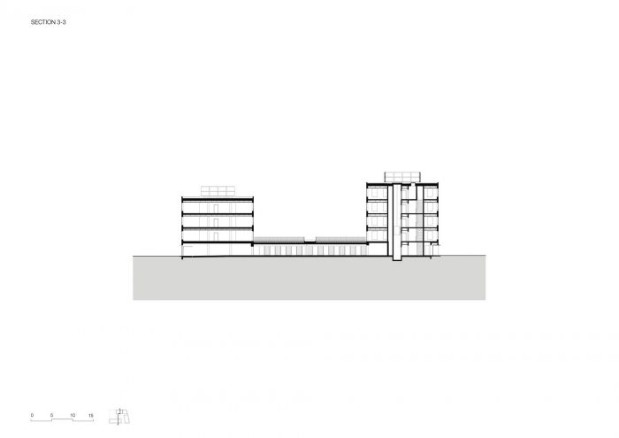 The new neighbourhood of Rives de la Haute Deûle sets out to promote active circulation through carefully planned public space, both on foot or by bicycle. In keeping with this urban policy, Îlot 13B project encourages shared parking. Office parking is located in the neighbouring multi-storey car park, while residents' parking is within the block itself, in a private, covered car park on the ground level.