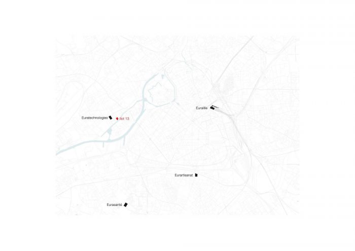 The redevelopment of the district began with the renovation of Le Blan-Lafont textiles factory completed in 2009. Today, Euratechnologies represents a key site for the new neighbourhood, fulfilling the role of a start-up incubator and gaining a reputation as a centre of excellence and innovation in the fields of digital technologies and research. The overall development project, headed by Soreli with a master plan by Pranlas Descours Architectes and landscape architect Bruel Delmar, proposes various public spaces parallel with the canal, making the most of its presence. This urban pattern extends through the different 'function-defined plots' (îlots) positioned on both banks along with the green spaces. This urban grid links the existing neighbourhoods to the areas reclaimed from former industrial sites. Brick is the preferred material to be used, echoing the surrounding 1930s townhouses.