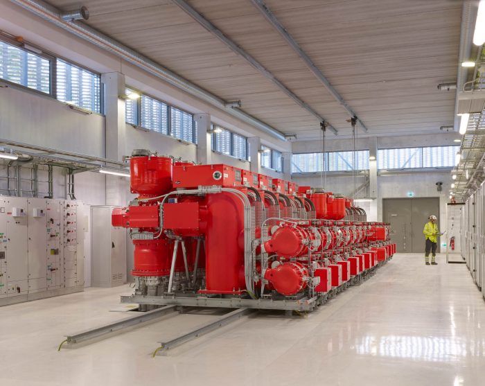 The outstanding feature of the old hydropower plant buildings' red brick-clad facades is the rhythmic arrangement of window bays and doors. Rhythm also became the main feature of the new substation facades and powerline structures. The old air-insulated switchgear, completed in 1929, was coming to the end of its operational life cycle and had to be replaced with gas-insulated switchgear housed in a new substation building.