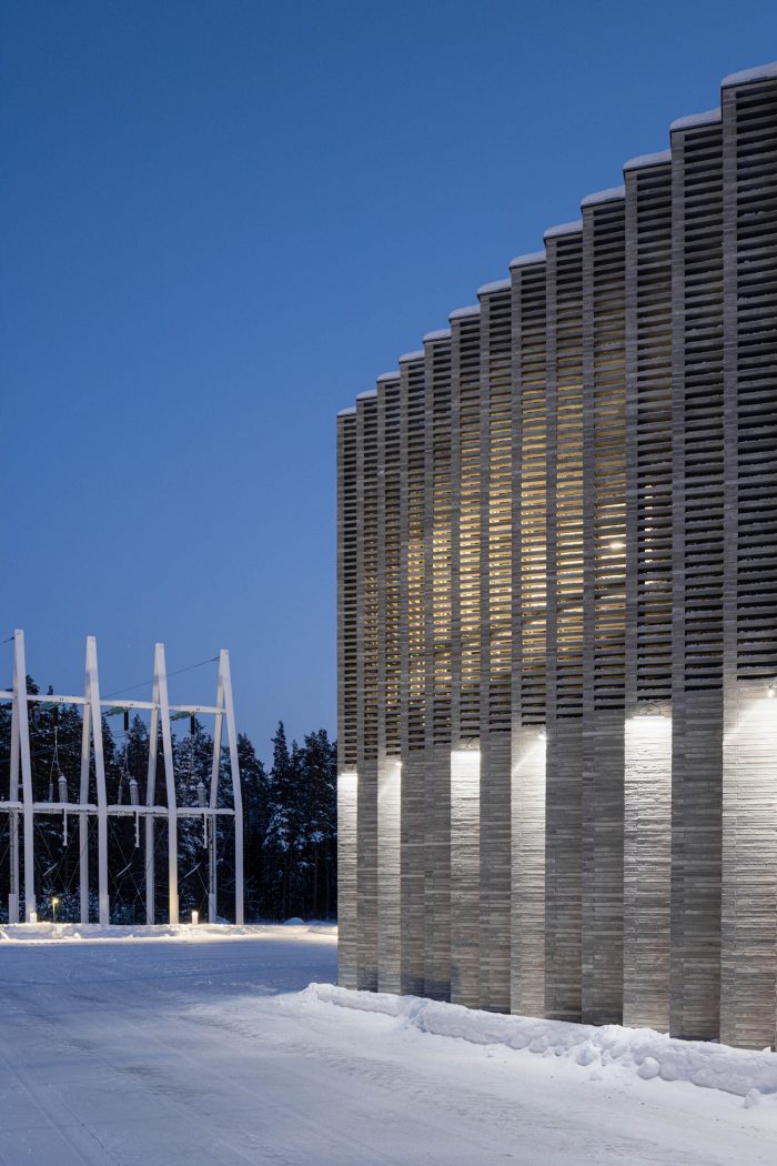 The project is composed of an electricity substation building and five transmission towers and terminals in Imatra in Eastern Finland. The project extends over two tributaries of the river Vuoksi and the culturally significant landscape of Imatrankoski rapids. The rapids were harnessed for power generation in the 1920s when the Imatra hydropower plant was constructed. This landmark industrial site was also the starting point of the first part of the Finnish main power grid. The historical significance of the area was why our client, the main grid operator Fingrid Oyj, pursued an exceptional substation facility.