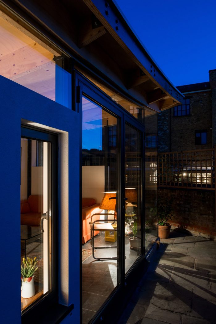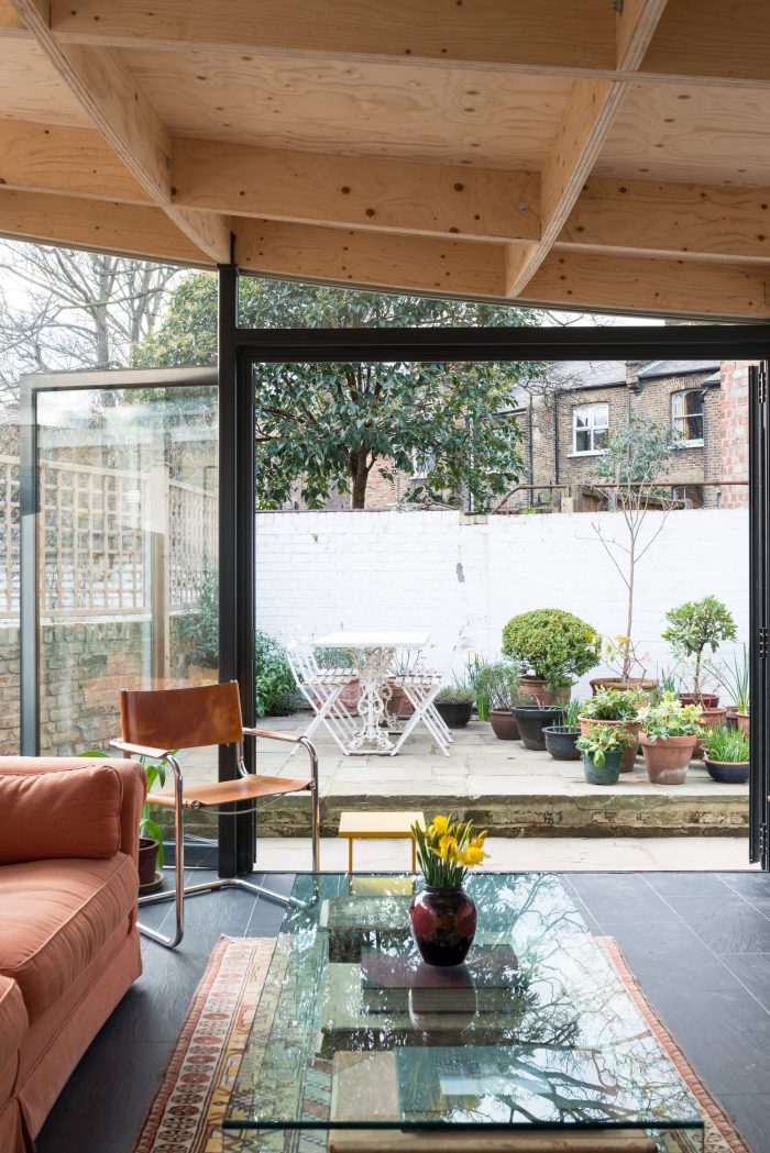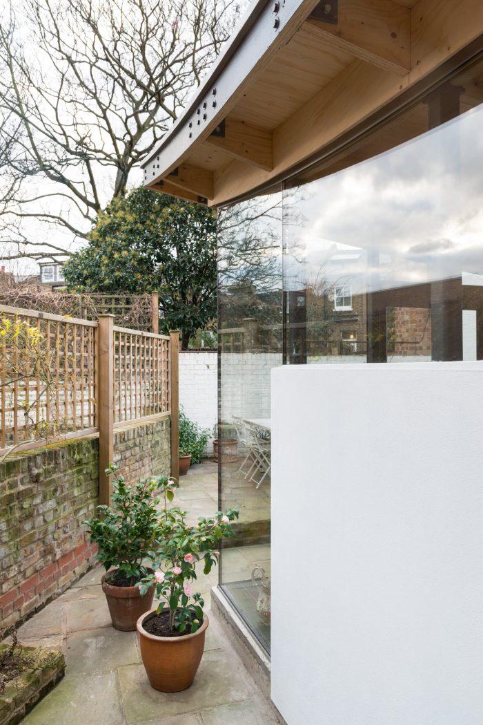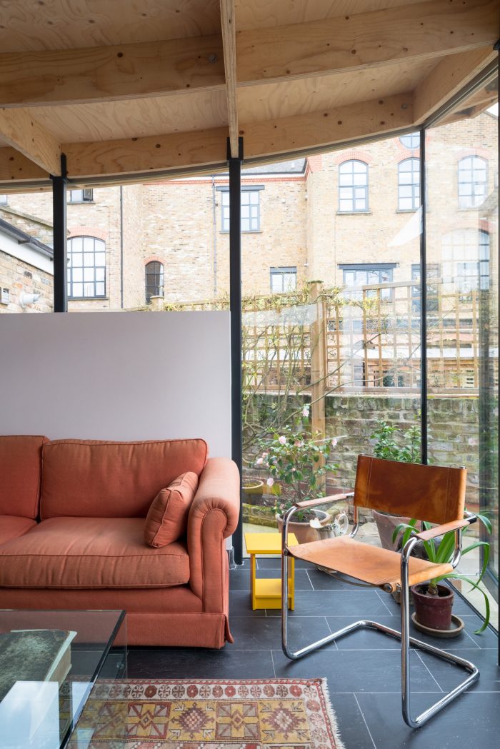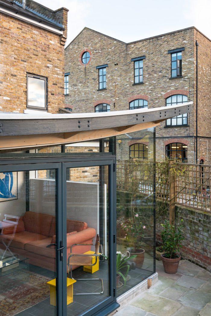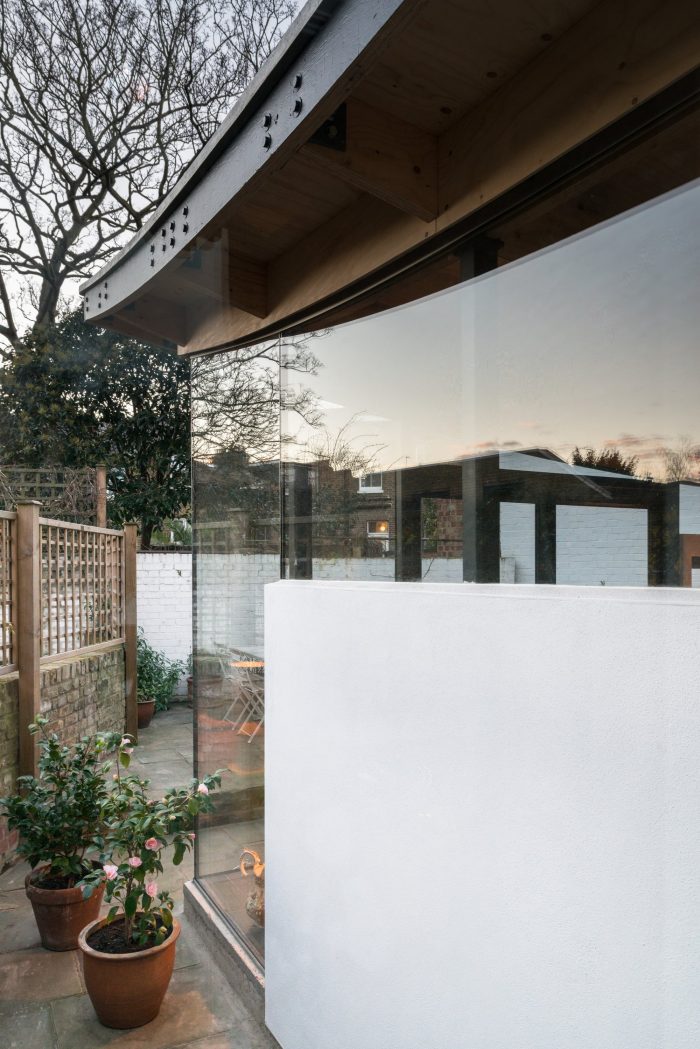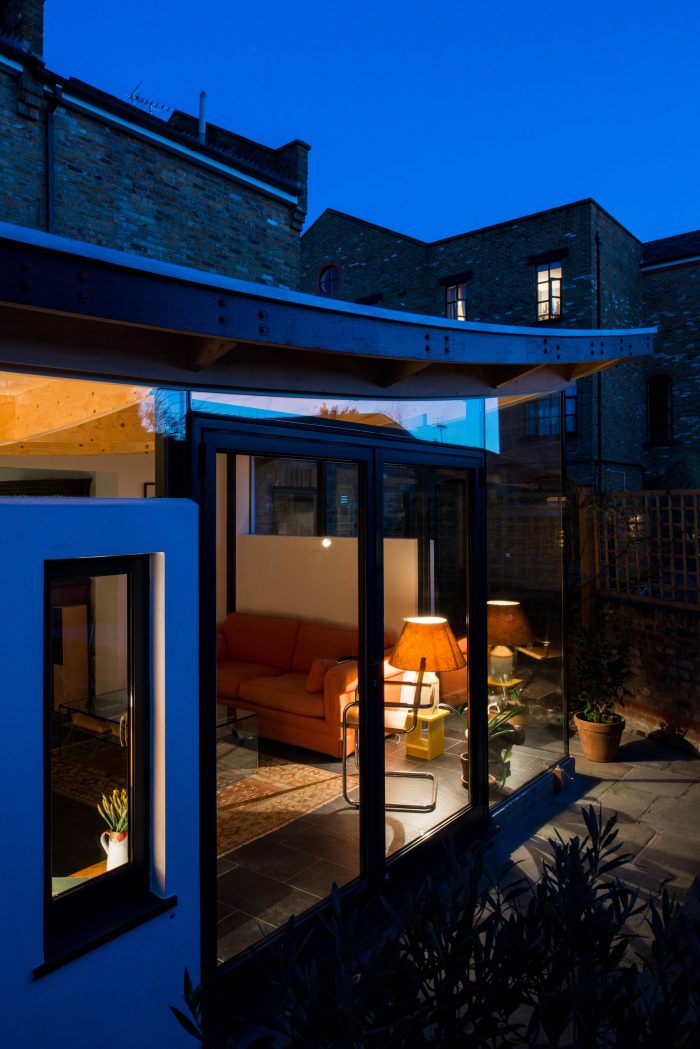 The client wanted a new extension which was of a similar size to the existing conservatory, but with a bit more climatic stability, a little less glare and more privacy whilst still retaining light and the relationship to their modest Dalston garden. The clients were keen to embrace a unique design solution.