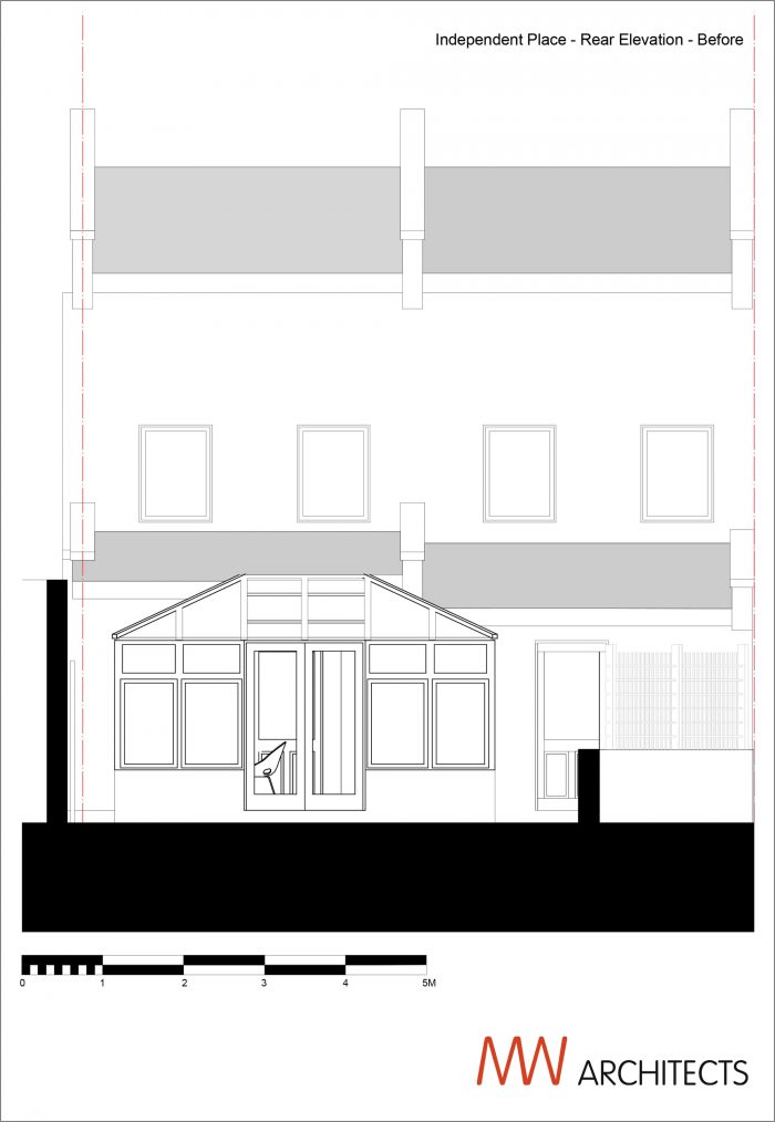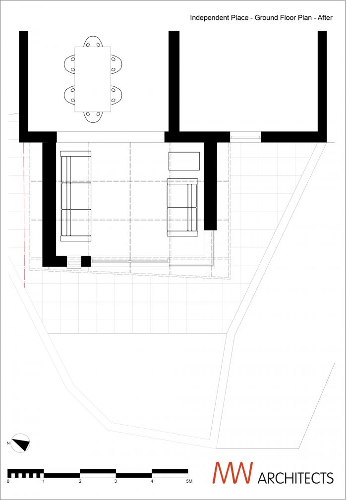 The design utilises the existing conservatory foundations and retains the floor slab including underfloor heating and tiles - a cost effective and practical strategy.