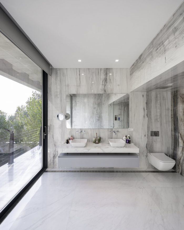 这座位于德黑兰的1400平方米的高端独立式别墅靠山而建,花园高出街面17米。外墙用天然洞石覆盖:这是当地著名的高质量产品,从伊朗山区采集。业主希望将他们的汽车停在地下,因此在花园下面有一条20米长的隧道,通向别墅下面的停车场。