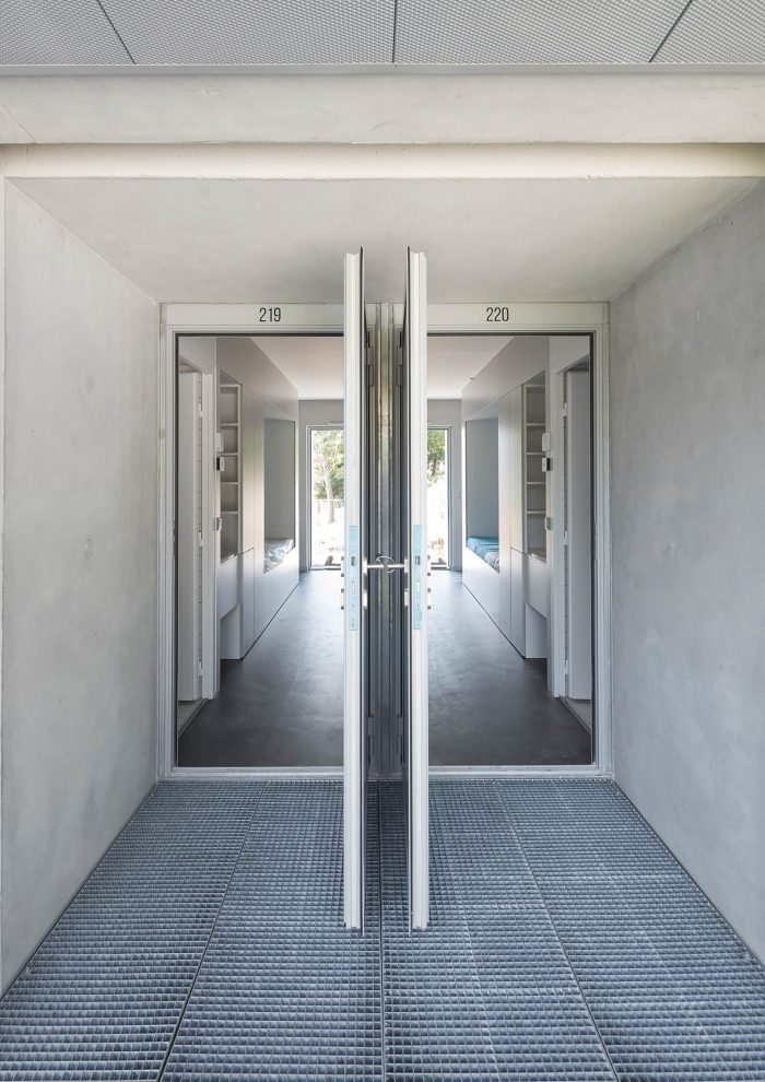 在与墙壁的光滑矿物质的对话中,可旋转的百叶窗就像钢铁盔甲,保护卧室不受气势汹汹的海景的影响。这个组合创造了一个持久的建筑,适合欢迎年轻的研究人员参加地中海的研究项目。