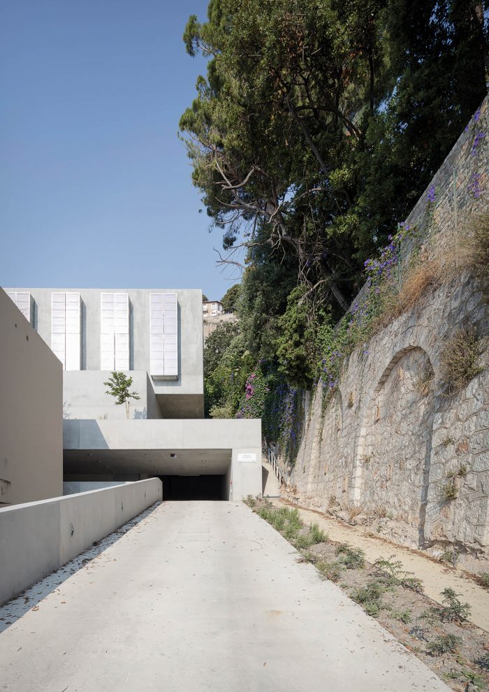它由附近采石场的混凝土建成,参考了俯瞰它的悬崖。金属百叶窗作为阳台上的屏风,让人想起当地建筑遗产中的绳索厂和军械库的窗户。混凝土块和金属百叶窗的关联创造了一个古老主义和当代性之间的对话。