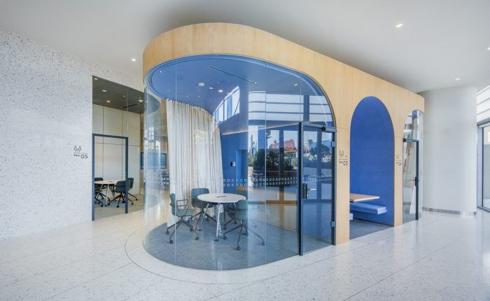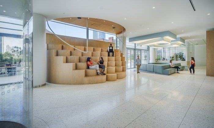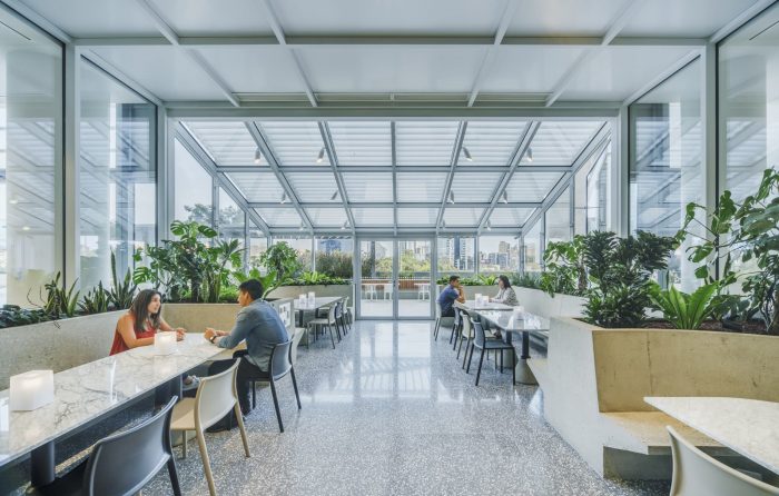 WORKac的设计跨越了塔楼的底层和公共空间的工作和社交中心,以及充足的户外工作空间的遮蔽。大流行前的设计是为了主持客户会议,支持远程工作人员,并将自然和光线带入大楼,事实证明,它对大流行后的工作所需的空间类型有明显的预见性。