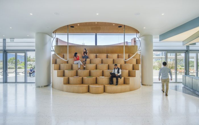 WORKac’s rethinking of Hans Hollein’s iconic and eclectic bank headquarters in Lima, Peru creates new interior and exterior spaces with design elements inspired by Hollein’s vision, yet remains firmly rooted in contemporary ideas about virtual and in-person collaboration and interaction.