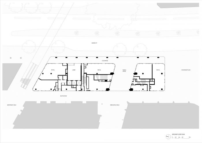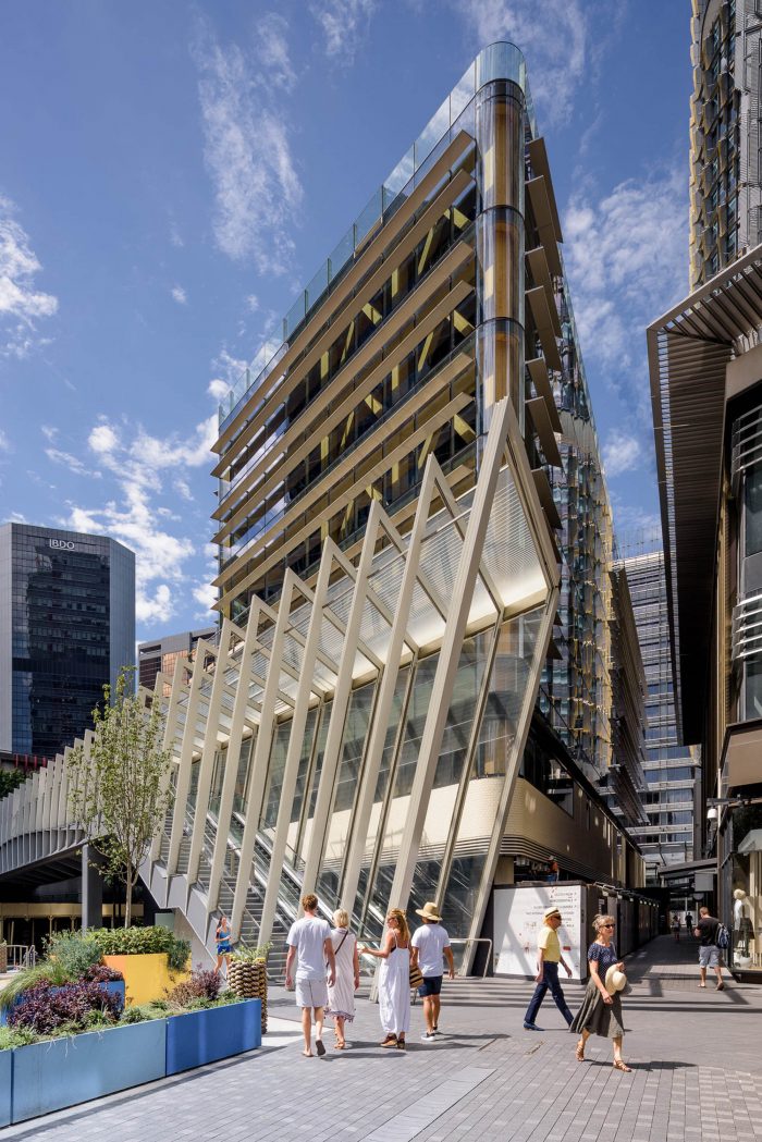 The architecture is underpinned underpinned by placemaking concepts: including establishing pedestrian oriented scale; reinforcing the urban form of the street and pedestrian networks, creating special conditions at corners to improve pedestrian amenity and experience; establishing a simple, understated aesthetic character as a counterpoint to other architecture in the precinct to enhance legibility; am interiors that create a fresh and healthy working environment for occupants.