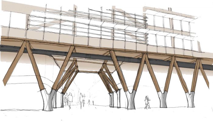悉尼国际大厦的设计理念是为公共领域的体验增加便利性和愉悦性,展示环境可持续设计的领导地位,并促进健康。结构上使用的完全天然和可再生的木材材料是项目的创新技术,它在世界各地越来越多的商业应用中被证明具有前景。