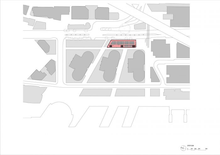 悉尼国际大厦位于希克森路(Hickson Road)沿线的巴兰格罗南区边界,南北两侧是连接城市的人行天桥,它以一个壮观的两层柱廊定义了巴兰格罗南区商业和零售区的街道边缘,柱廊由回收的铁皮实木设计。柱廊通向南面的立面,形成有顶的公共广场,并与另一个重要的有顶公共空间Mercantile Walk相连,在一个受保护的环境中提供更多的活动机会。