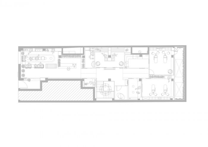 The place consists of 2 floors (with a total of 350m2) that are distributed fulfilling a complete program of needs. All patient care areas are located at street level and the basement is used for personnel and operational uses.