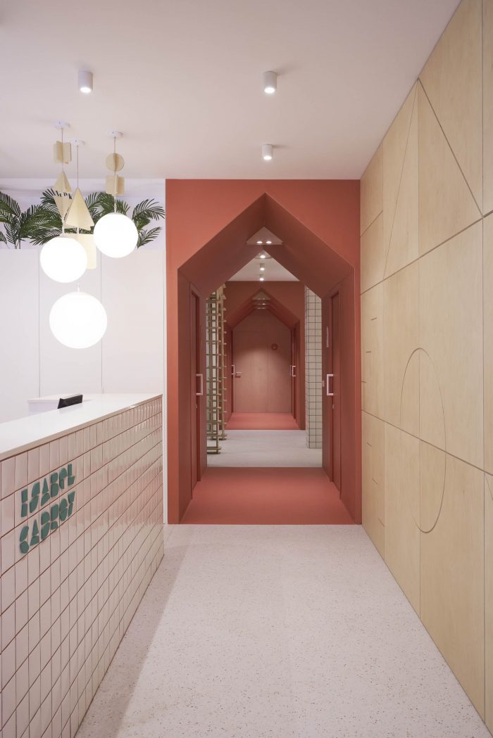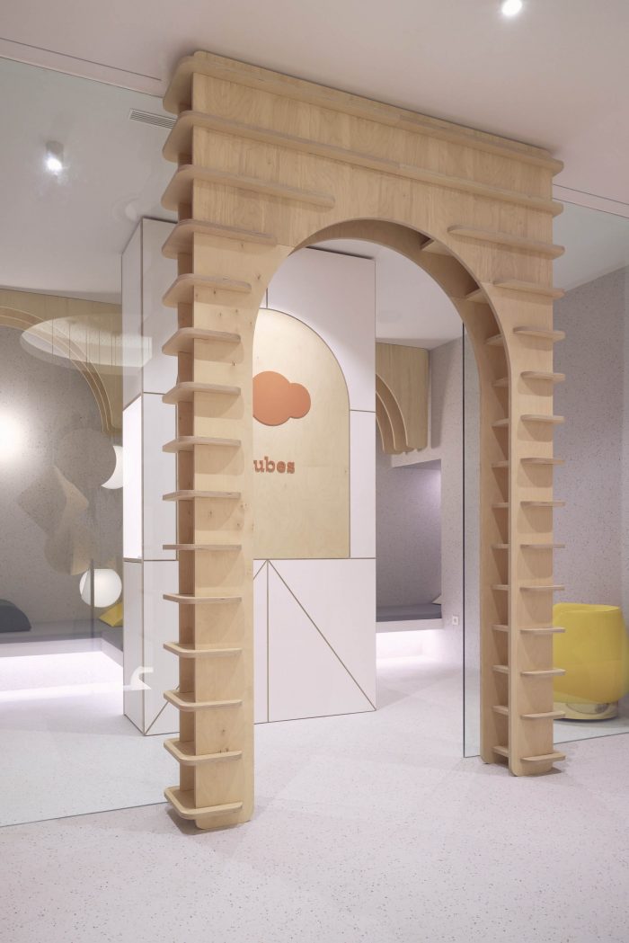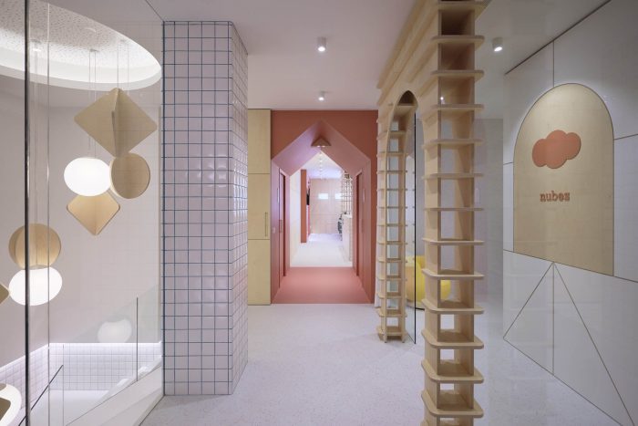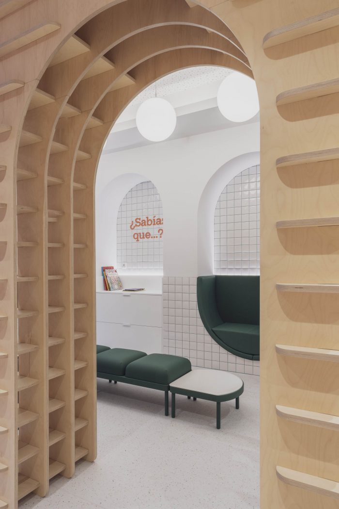 The creative axis is inspired by some of the learning forms of children's cognitive development. The brand and the corporate interior design project are generated taking as a starting point the construction games of wooden pieces and the puzzles of elementary geometries. The clinic surprises-both children and adults with recognizable out-of-scale elements that refer to children's learning such as huge porticoes, lamps in the form of wooden mobiles, or paneling like jigsaw puzzles. The result is an evocative space that connects with the child in us and transports you.