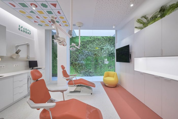 The interior design project for the pediatric dentistry clinic of Dr. Isabel Cadroy begins with a new communication strategy to strengthen the positioning of the business. The new premises and the renewal of the brand represent the beginning of a new stage that consolidates its competitive advantage as a clinic dedicated exclusively to pediatric dentistry and orthodontics for children and adolescents. For the doctor, it was important that the clinic be friendly and welcoming, but without falling into a childish aesthetic. And to be able to transform stress and fear, common in visits to the dentist, into confidence and tranquility. Vitale designs a corporate space that connects with all the public of the clinic and recreates a positive, familiar, comfortable and calm environment.