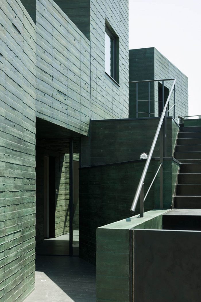 建筑物的表面旨在穿上表情,像生物一样变化。在单色/彩色和人工/自然之间创造了一种条件,因此它放大了每个季节的色调和饱和度的变化。它看起来像一个粗糙的工程作品,同时它也像一块长满苔藓的岩石。它穿上了漆黑的黑暗,同时它也穿上了无数的绿色阴影。