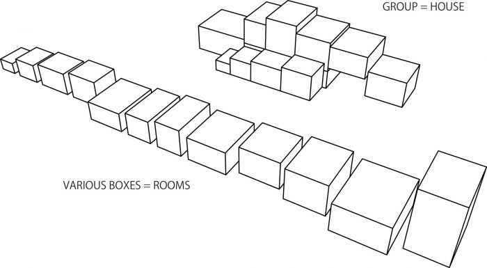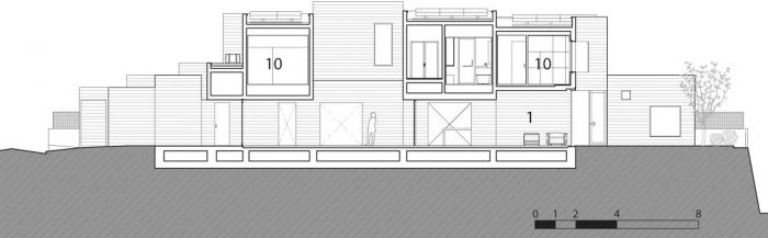 Each box with different plans, height, and views supports everyday life as a functional box such as bedrooms, kitchen, etc. The boxes are also designed to allow the clients to change the usage. But at the same time, various blank spaces are created that is yet to be defined. Difference of the sizes, views, lights, colors, and thermal environments are connectively distributed in this space. The client would search through, view, stop, and relax in the heterogeneity along the blank spaces.