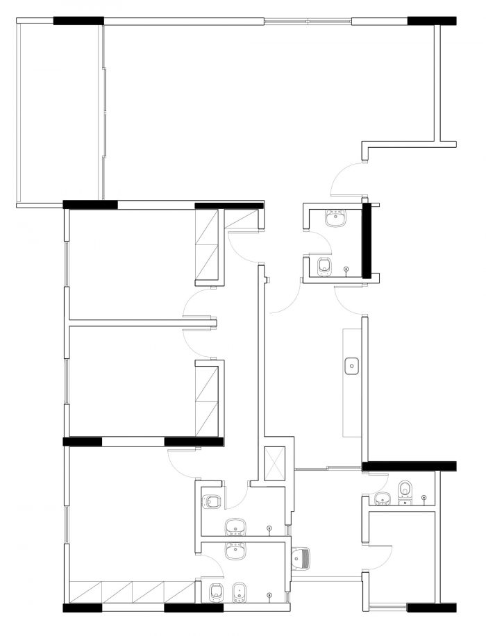 在此基础上,圣保罗的两个办公室(SOEK建筑和VOA建筑)合作开发了这个项目,重新安置了厕所,并将其中一间卧室和厨房整合到客厅。环境的连续性是通过进入厨房的木质地板实现的,只在工作台上被打断,那里的岛是用覆盖工作台面墙面的相同的液压砖制成的。