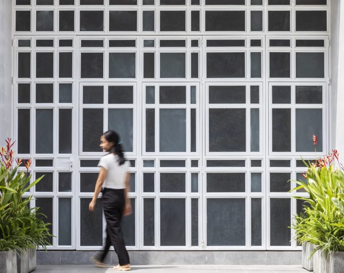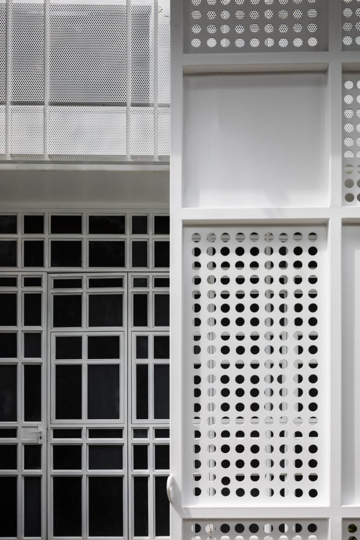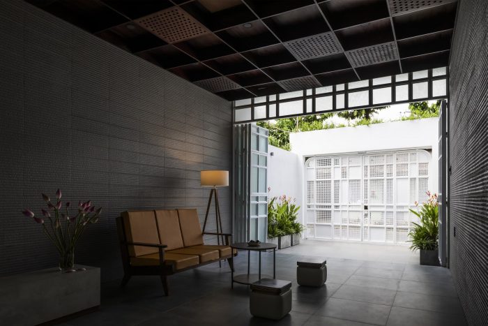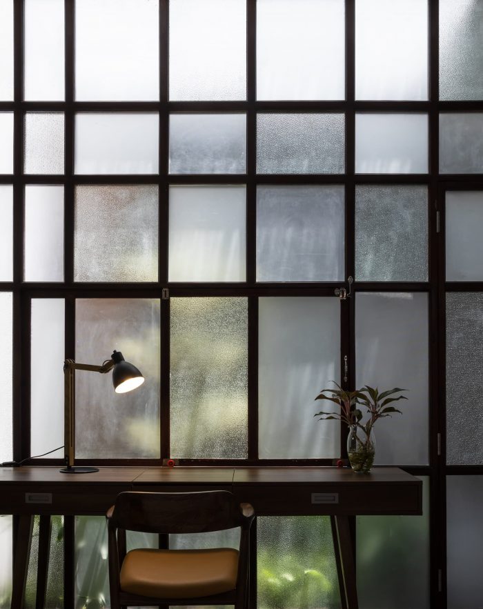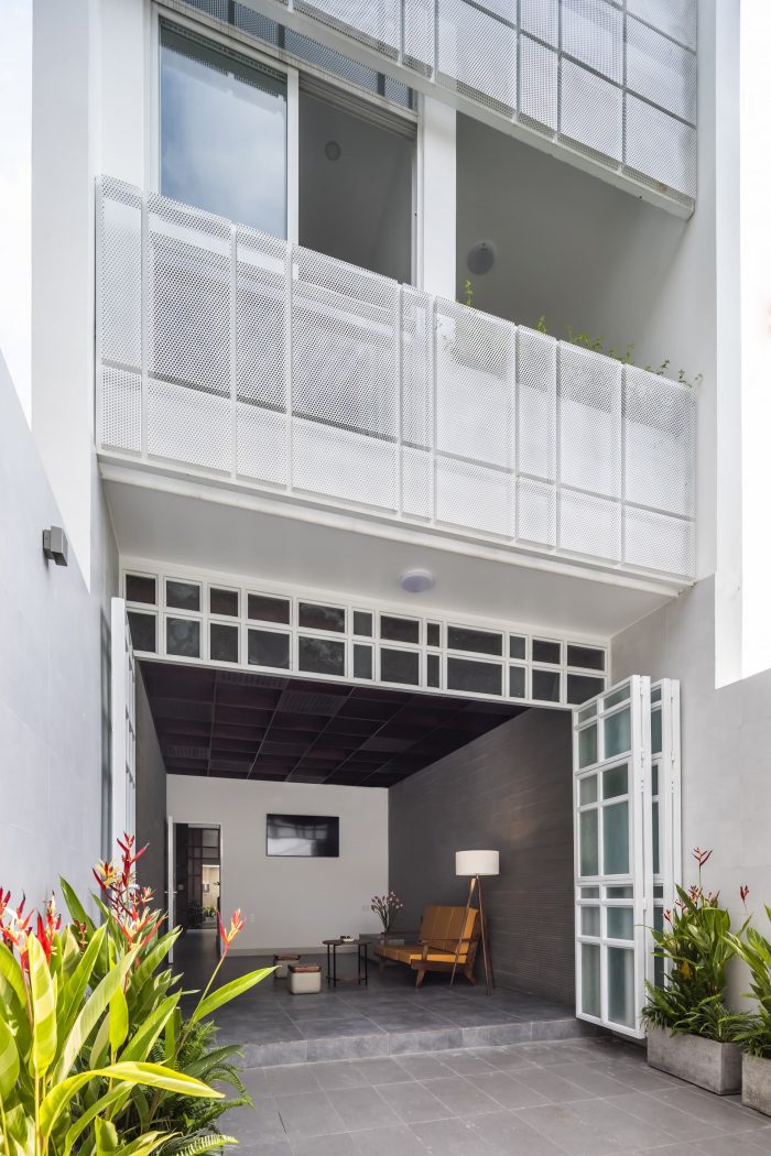 Third: The design of functions to establish two natural ventilation shafts vertically and horizontally has ensured all spaces in the townhouse are naturally ventilated. The Louvre Z system located above the skylight helps to release hot air and reduce the pressure below the glass roof. Air enters the house from the two front and rear door systems, creating a flow of air that circulates throughout the space, then goes to the low-pressure area below the glass roof, takes the heat, upward, and through the louver Z to escape outside. This process always keeps the indoor air fresh and cool.
