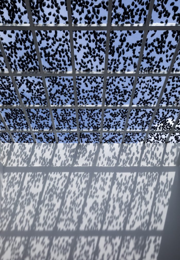第二:当让自然光进入房屋时,有必要计算、实验和检查现实,以调节光量,使其适合日常活动,并为绿色植物提供足够的生长和发展。在J家,太阳能玻璃被用来减少天窗区域40-45%的热量。在玻璃上方铺设石头的方案也可以调节光线,并形成遮阳。因此,室内空间始终充满了自然光,但并不热,此外,石层的阴凉创造了一种像阳光透过树叶的效果,有助于增加联排别墅空间的自然感觉。