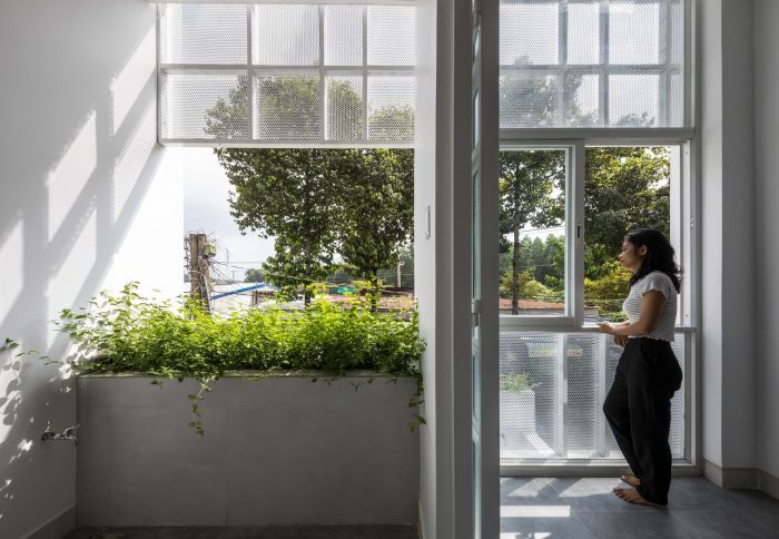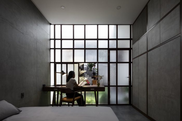 The owner of the J house is a single teacher, after a period of accumulation, she bought a small piece of townhouse land with dimensions of 4 x 24m. The teacher shared that she likes to spend a lot of time at home, and she has a habit of taking care of the plants in the garden and wants the house to be bright, airy, and close to nature. However, the townhouse layout is narrow in width, in the case of J house is 4x24 m, and the normal construction method stretches, dividing the room will cause a lack of light, poor ventilation, and noise resistance, as well as insufficient space. Garden space for the homeowner's hobby.