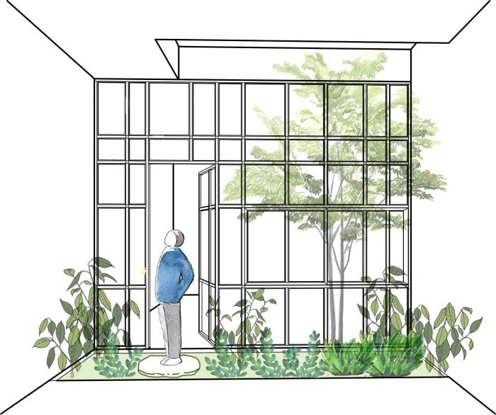 J房子的主人是一位单身教师,经过一段时间的积累,她买了一小块联排别墅用地,尺寸为4×24米。这位老师分享说,她喜欢花很多时间在家里,她有照顾花园里的植物的习惯,希望房子是明亮、通风、接近自然的。但是,联排别墅的格局宽度较窄,以J家为例是4x24米,正常的建筑方式拉伸,隔断房间会造成采光不足,通风不好,噪音大,空间也不够。花园空间供房主的爱好。