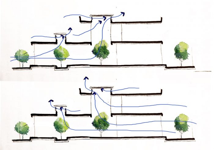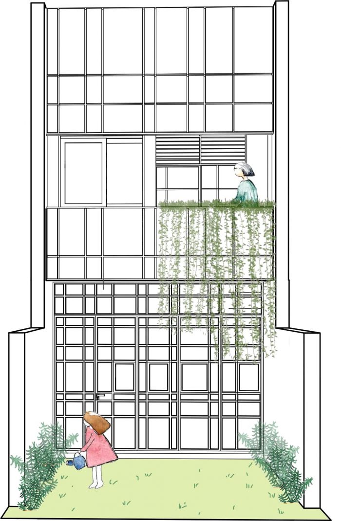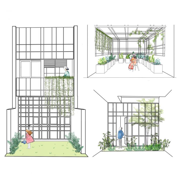 After analyzing the typical defects of townhouses, the team put the criteria of green space, natural light, natural ventilation, and noise prevention into the top priority list in the design process. Through the process of working, the team agreed on a solution to layout functions to help limit the disadvantages when designing townhouses: