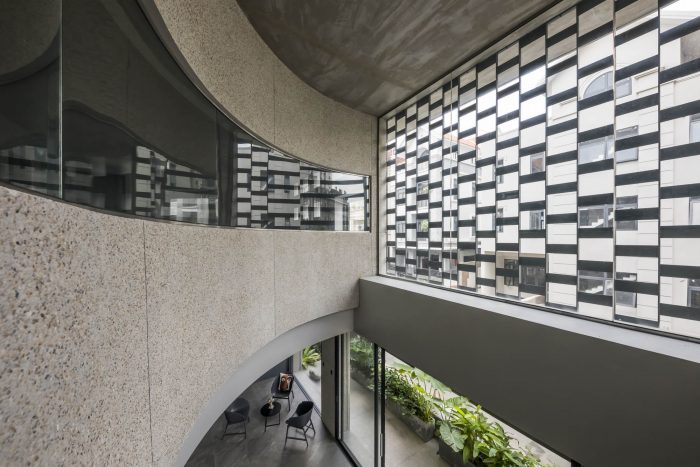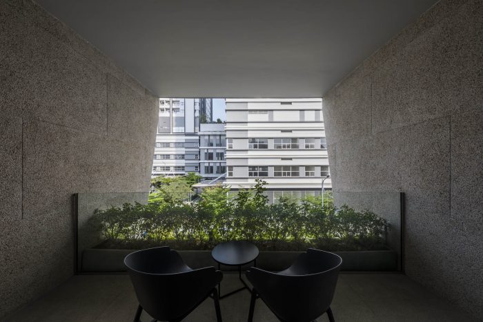 The space is separated into different layers with a homogeneous wash stone (granite) material inside and outside, blurring the boundaries, only the subject and the atmosphere surrounding the subject form solid. Calculation of the space by the purpose of use and each activity that takes place.