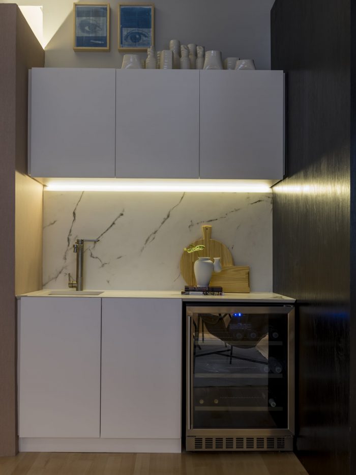 "In a good party, there is always room for one more. The important thing is the spirit of fraternization among family and friends. The idea of the bench makes a direct analogy with the spirit of Casa Cor's three-decade anniversary. There is no exact limit to the number of people sitting here in the space, there is always room for one more!", jokes architect Nildo José. Adhering to numerous roles and functions throughout the studio, the bench at the entrance takes the place of a hat stand, inspired by New York lofts, with support for bags, hats and personal objects of the visitors. Next, the furniture becomes a shopping support, where a parked bicycle and a basket of products humanize the project.