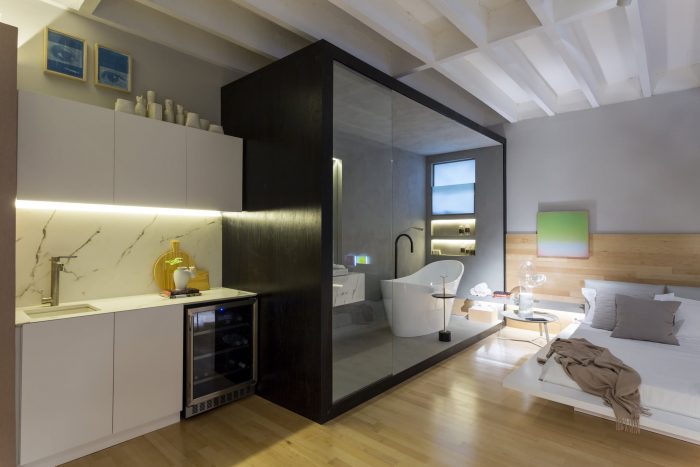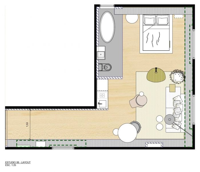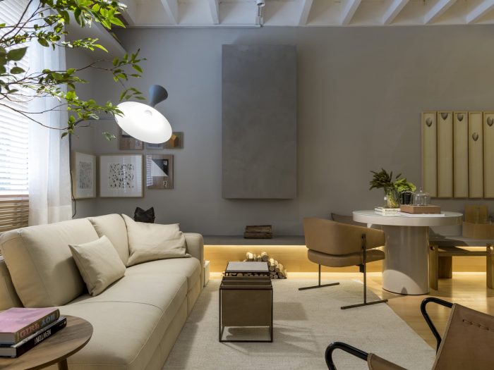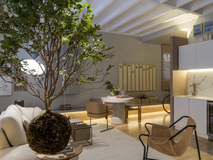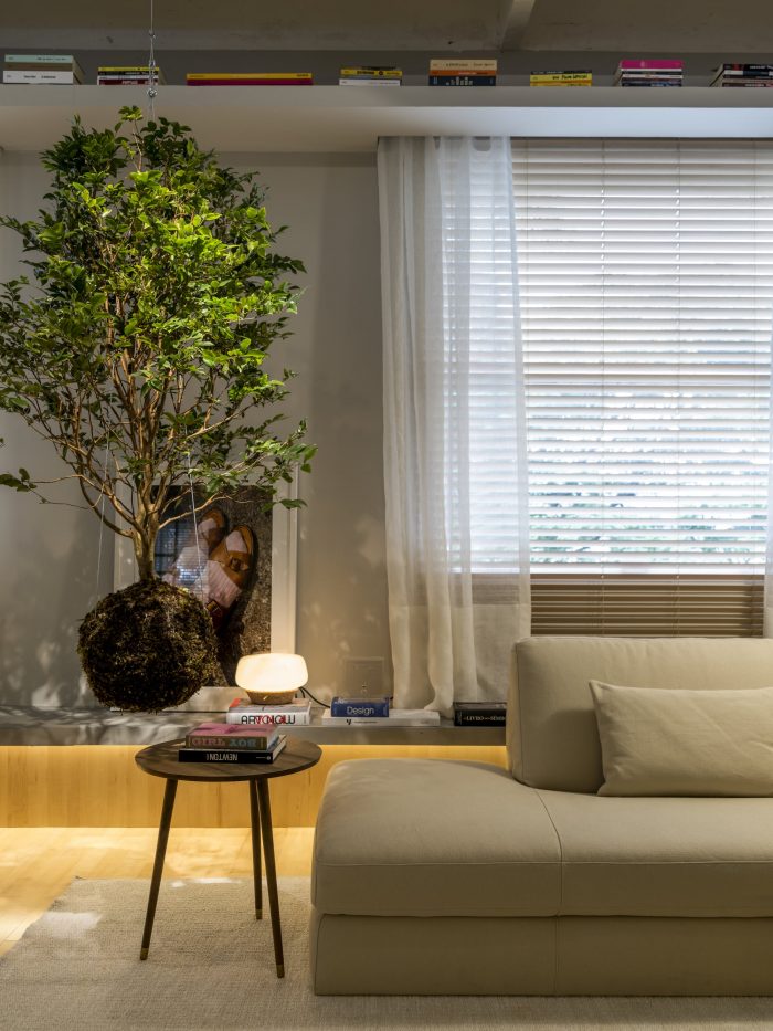 A jovial, cozy and functional apartment are the main characteristics of the 44m² environment - Jabuticaba Studio, signed by Nildo José, a new promise of Brazilian architecture that, at only 27 years of age, debuts at Casa Cor São Paulo, held from May 17 to July 10, at the Jockey Club São Paulo. The name chosen for the environment is in honor of a fruit tree suspended by steel cables and wrapped by the Japanese technique calledkokedama.