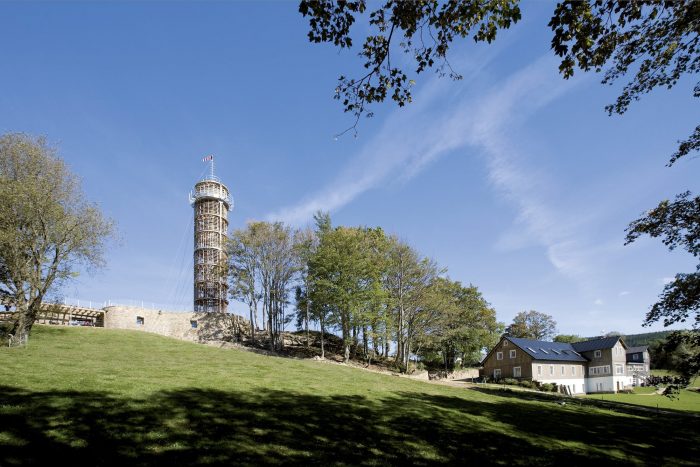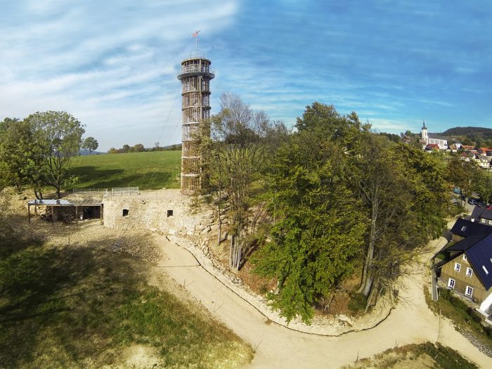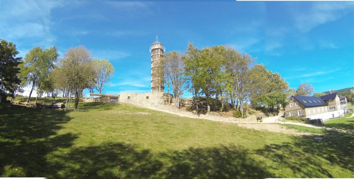 游客通过石墙上的一个洞进入博物馆(与真正的Cimrman团伙合作制作),并继续沿着螺旋形的楼梯,从博物馆的最中心升起,到达18米高的烽火台的观景台。烽火台的顶部装有典型的属性,如画廊、桅杆、旗杆和分段式玻璃。它包含一个全景板,上面有对景色的描述。