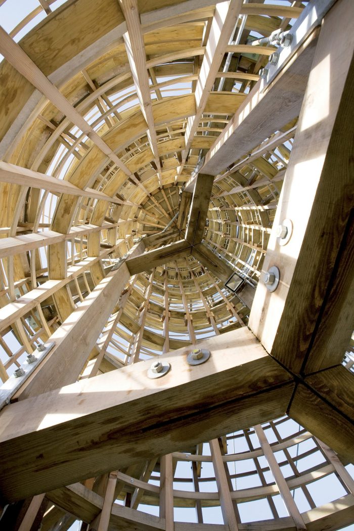 该结构的美学概念是基于水平墙和木质灯塔结构所体现的垂直度之间的对比。石头是在挖掘现场直接开采的,木材源自吉泽拉山(框架用花旗松,楼梯用橡木)。