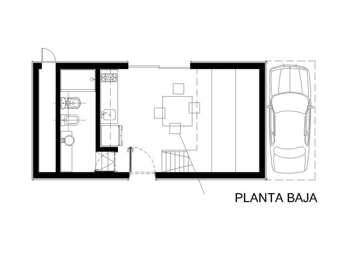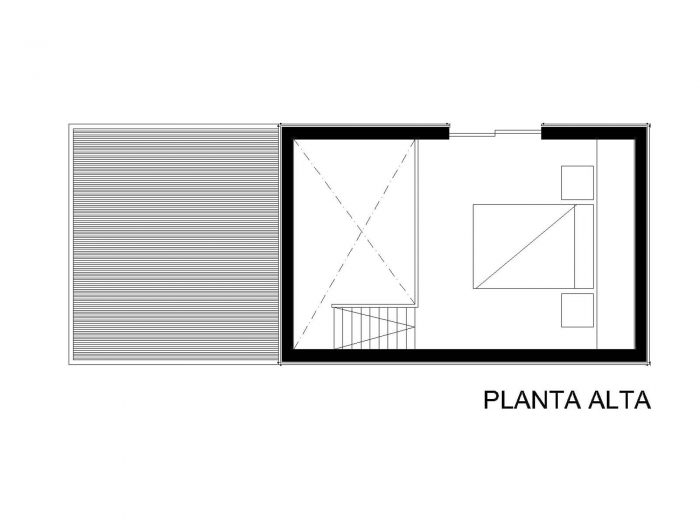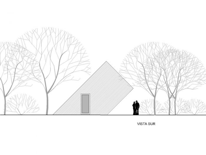The commission of a small house (30m2 or 46500.1in2) a few miles from Chascomús lake, let us reinterpret the archetype of sloped roof cottage. A little modification in the prototype model transforms completely the landscape, spaces, and relationships both inside and outside.