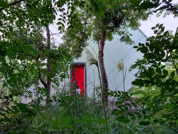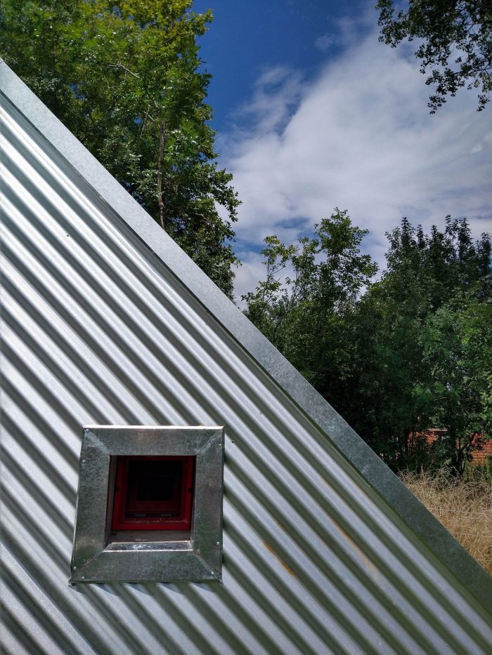 关于可持续发展,钢材是保护房屋热能的皮毛,同时也是一种几乎无需维护的材料。屋顶的主斜坡收集水,并将其放置在一个封闭的水箱中,用于浇灌主人的花园/菜园。室内用水从水井中提取,污水排放由生物消化器解决,供暖由壁炉解决。