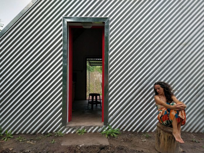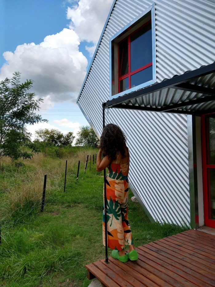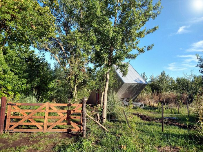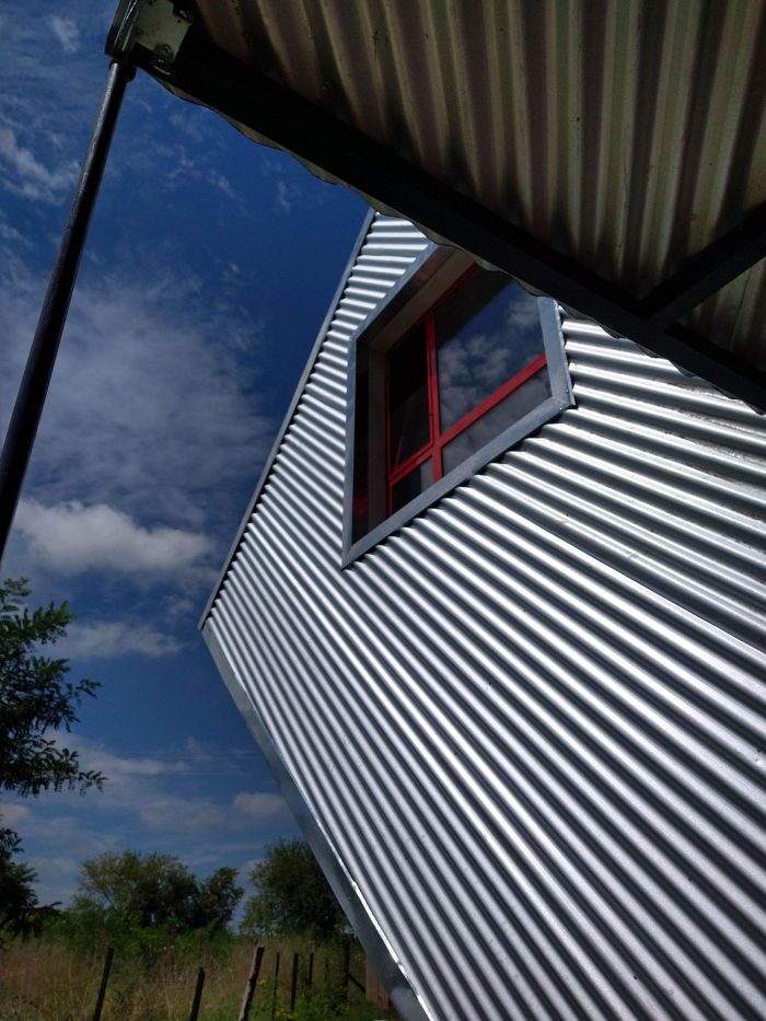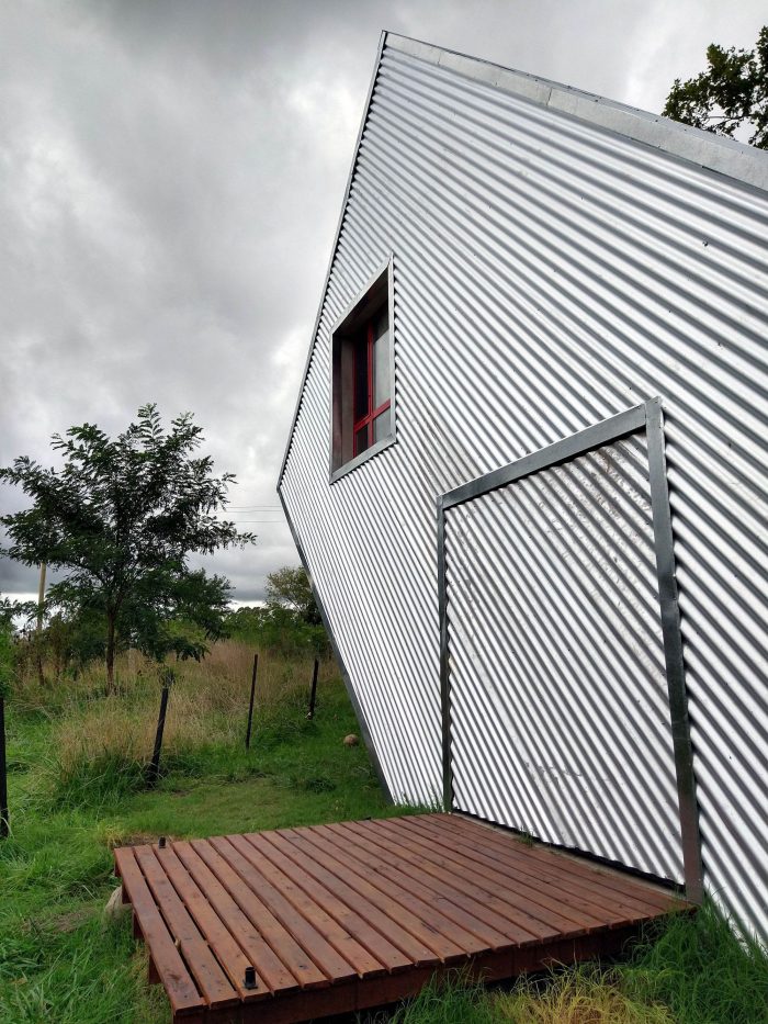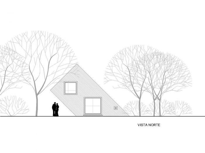 About sustainability, steel is the fur coat that protects the house thermally, besides being a material with practically null maintenance. The roof’s main slope collects water and places it in a closed tank that will come in use for the watering of the owner’s garden/vegetable garden. The water for the inside use, its extracted of the water well, the sewage drains are solved with a biodigester and the heating with a fireplace.