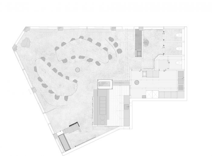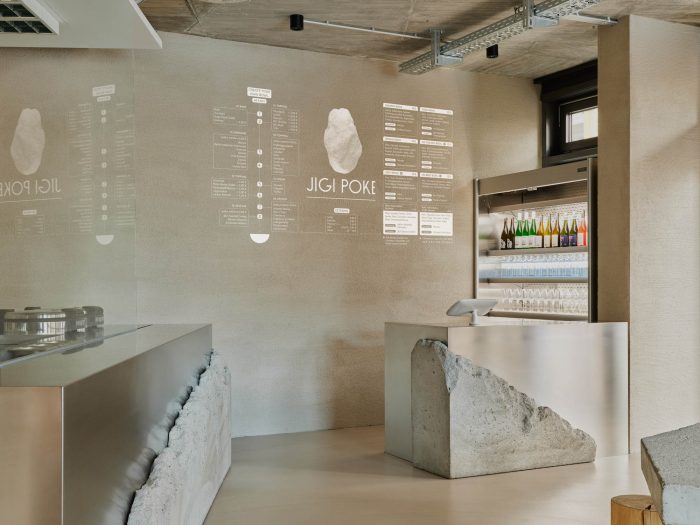When the opportunity was presented to design a Poke restaurant, we decided to free the concept from what is already known. This project is about re-evaluating the ideas of how hospitality is organized in times of a pandemic. We strongly reduced the number of possible guests taking a seat at the same time and increased the distances of people sitting across from each other. The majority of the seats are fixed to have a clear management structure within the restaurant.