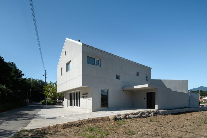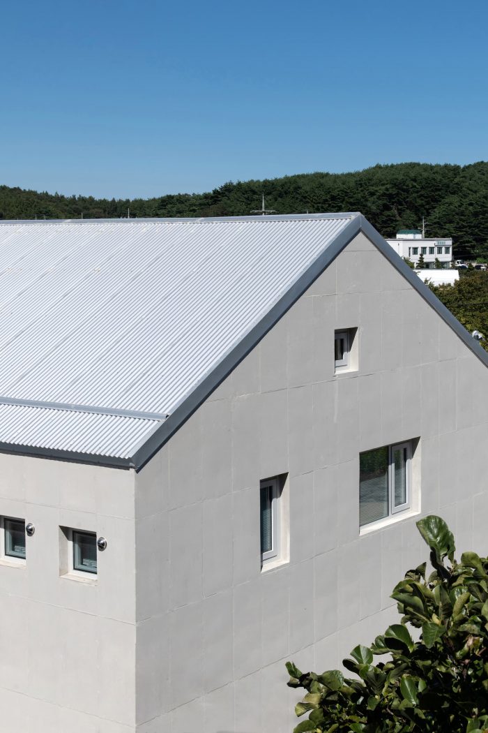 The facade, in which the concrete wall moves in various directions and the metal roof is overlapped, expresses the space as a lively state through changing light and shadow. The void space in the middle between the residential space and the commercial space becomes a transition space for residence and work. This space forms an appropriate boundary between programs and becomes a space of sensation where you can feel the change of time inside a building.