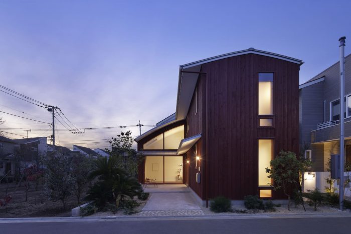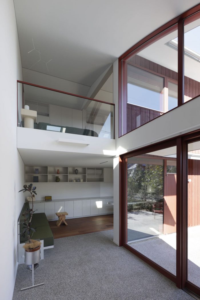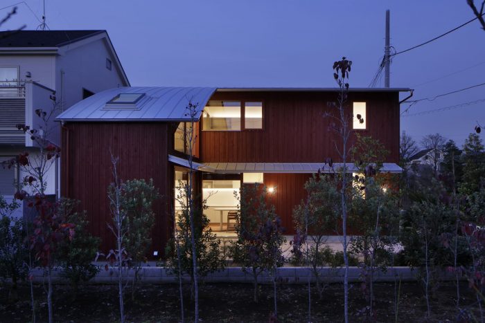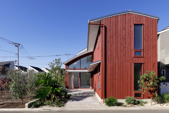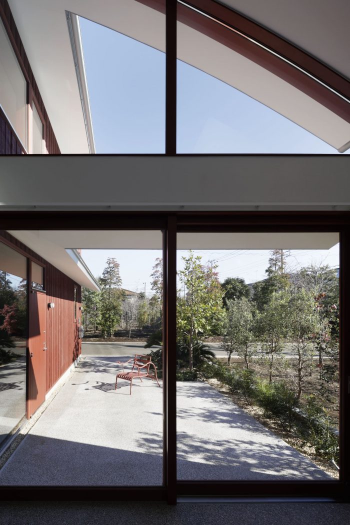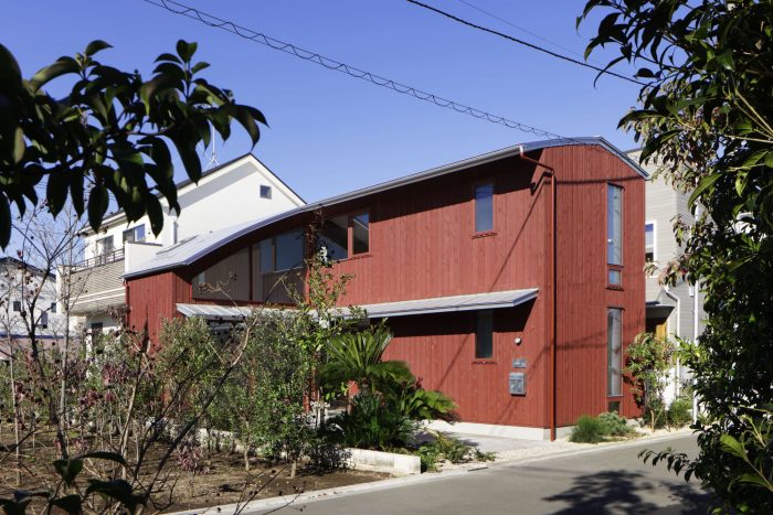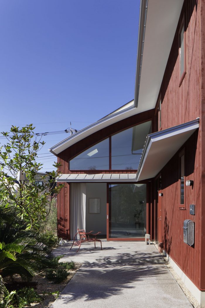 A project located in a quiet residential area in Chofu City, Tokyo. The client was attracted to this environment due to the trees planted in a green belt next to the site. One of the requests from the client was to create a residence inspired by "red soil" and "reddish brown," which contrasted with the surrounding green. Furthermore, the client wanted to use the house not only as a place to live but also as a gallery-like space that is open to the community. The house is a new hub for the client, who is a merchandise buyer and a director for design in art, and was designed to be used for various public and private activities.