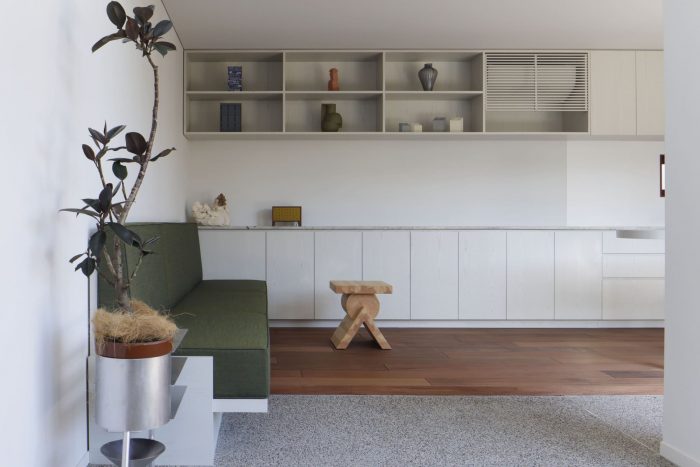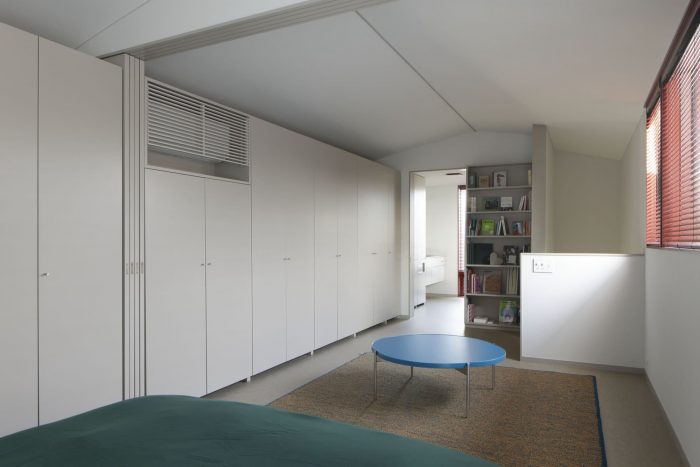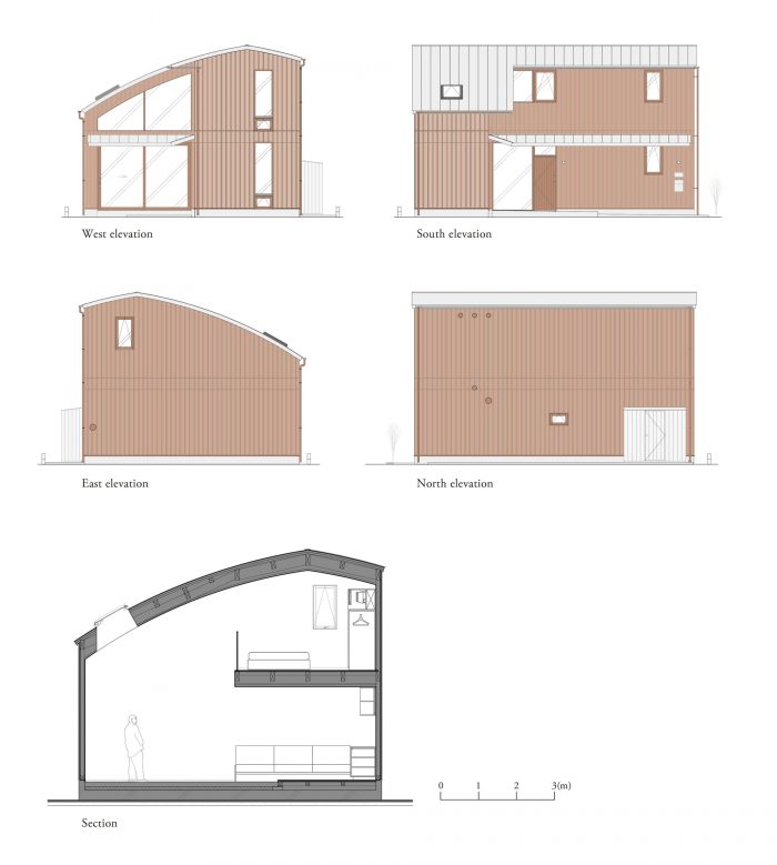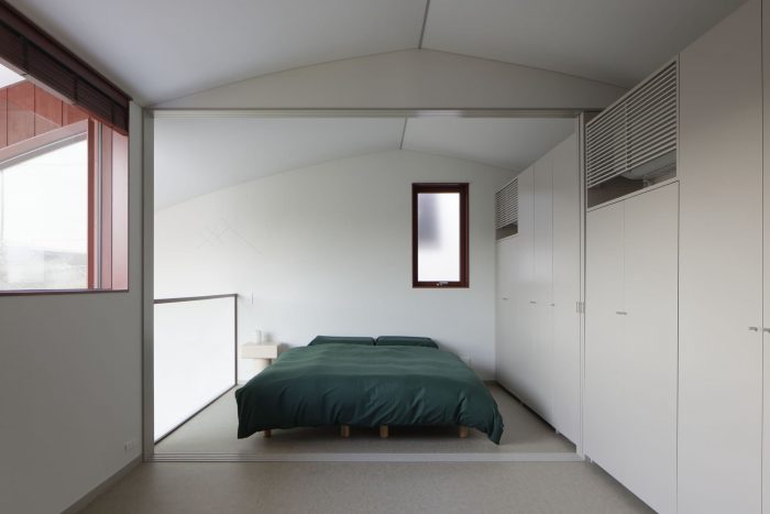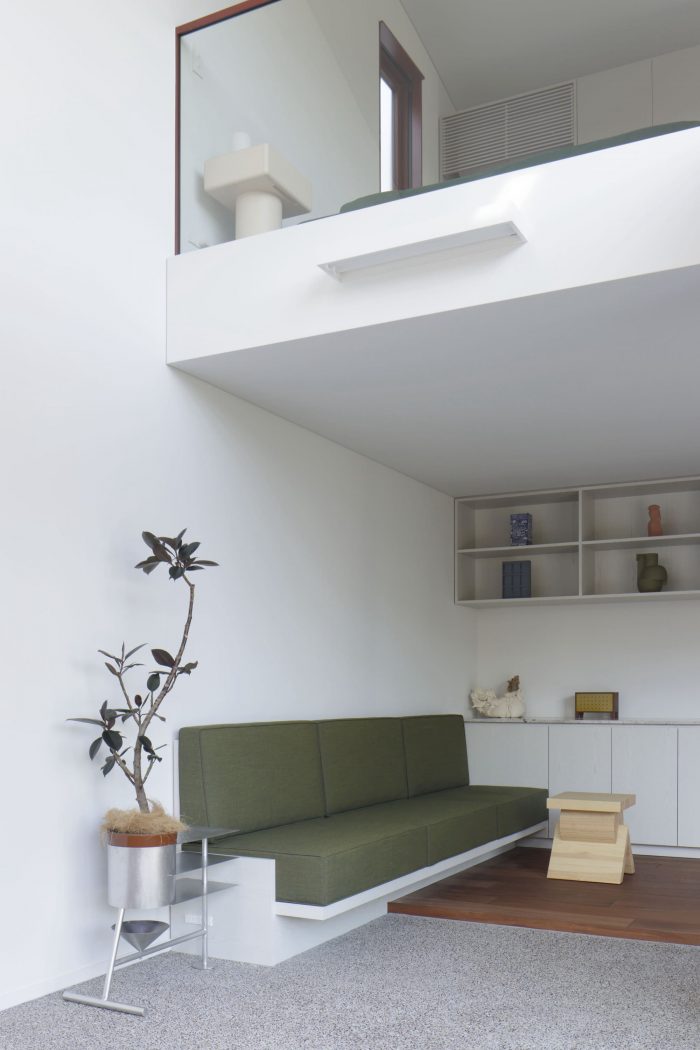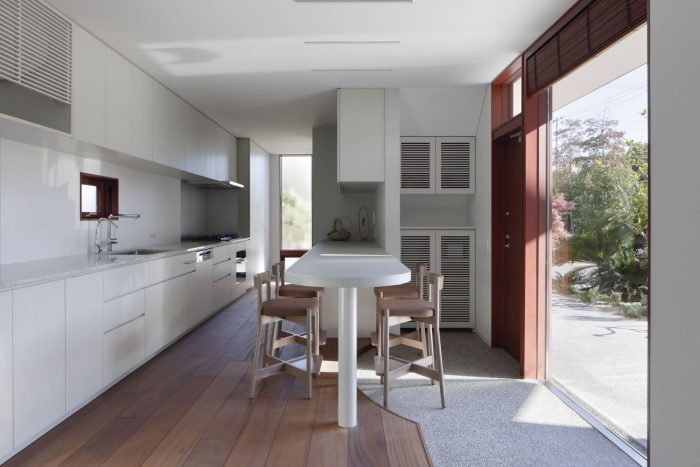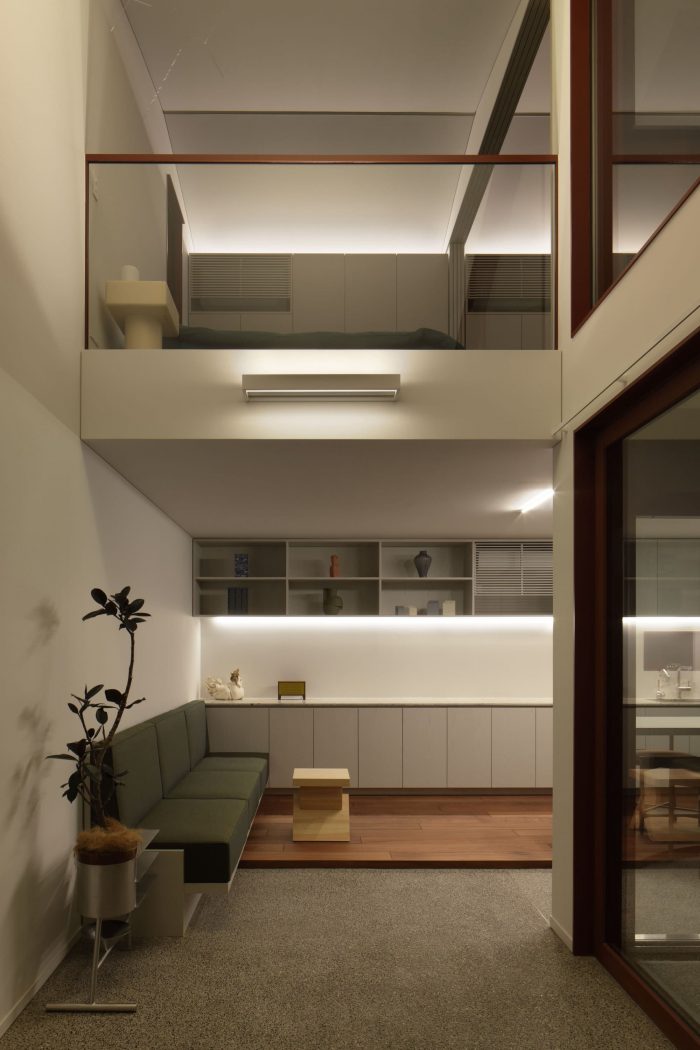 例如,底层通常作为起居室和餐厅,但在活动期间却成为一个半公开的展览空间。餐台比平时设置得更高,灵活地改变了它的角色,从展览的展示台变成了与厨房配合的站立用餐的服务台。此外,柜台和沙发等家具被放置在土质地板和木质地板的交界处,这样人们不用脱鞋就可以使用它们。这座房子的进一步特点是,它的设计可以支持多种情况。