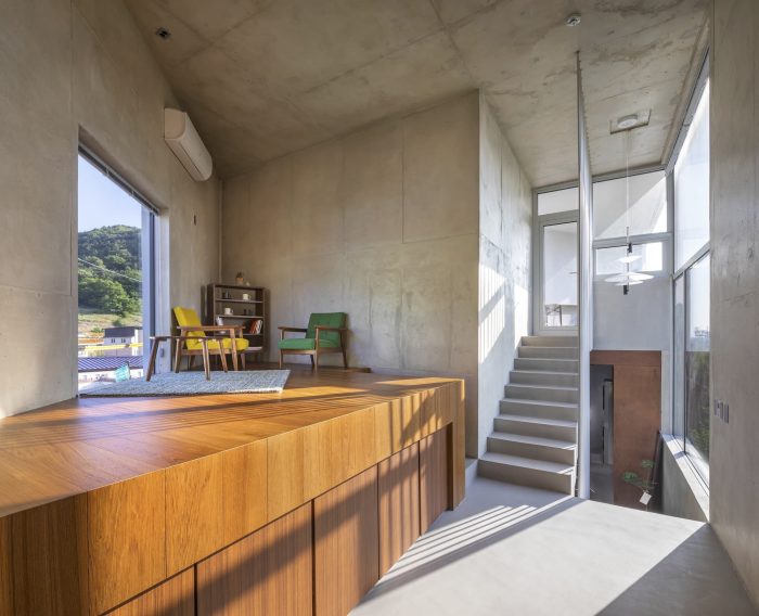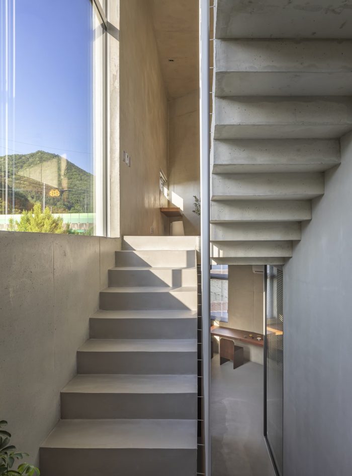Loose Boundary - The interior space uses skip floors to add height variation, secure a sense of openness in the living room space, and reduce the burden of moving between floors. The stairs are not divided into separate places, and they do not conflict with the functional spaces of each floor to boost space utilization and movement efficiency.