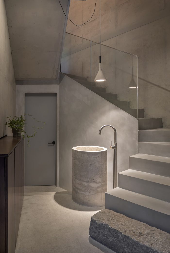 内部空间有裸露的混凝土饰面和天然木质材料制成的内置家具,以保持从自然外观美到内部的一致基调。
