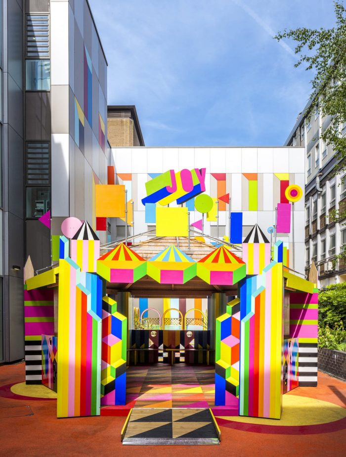 Morag Myerscough’s first project at Sheffield Children’s Hospital - which saw four designs across forty-six en-suite bedrooms, secured her close connection and commitment to the hospital, its patients and its staff and in-turn provided the initial inspiration for her most personal project to date, the Joy Garden. After a site-visit with Cat Powell, former Head of The Children’s Hospital Charity’s arts programme, Artfelt, they both knew the value of the underused outside courtyard space, and the difference it could make to children, families, and staff. Understanding the difficulty of securing funding projects for hospitals, Morag personally approached method, creators of future friendly cleaning and personal care products, who she had been working with on a limited edition product range.