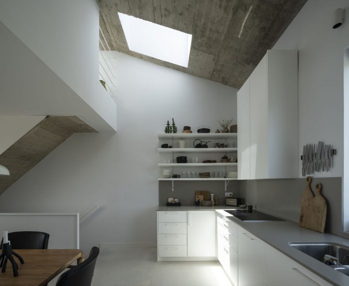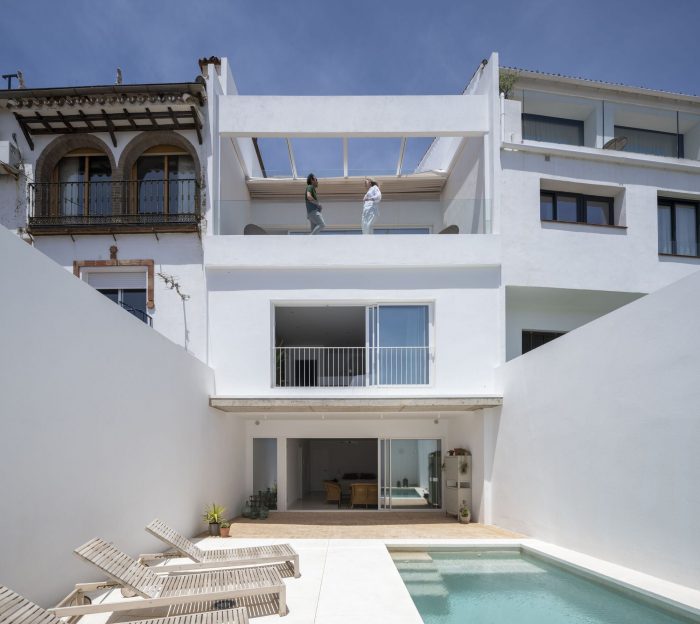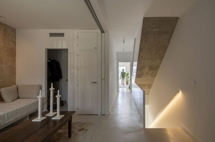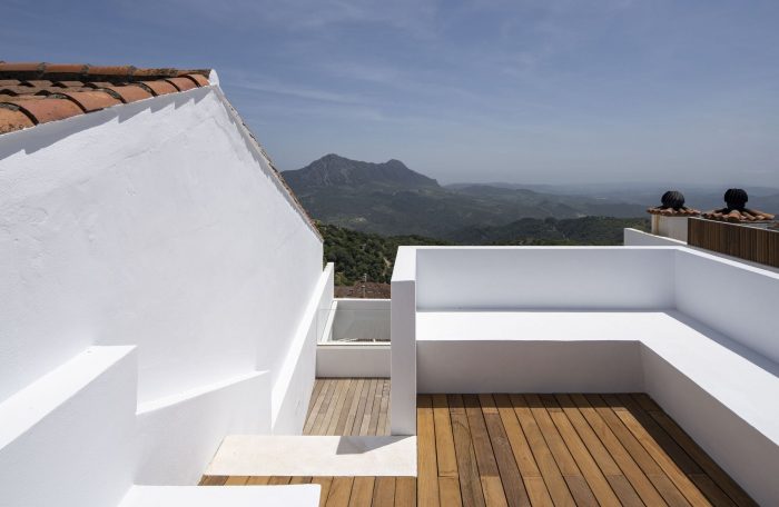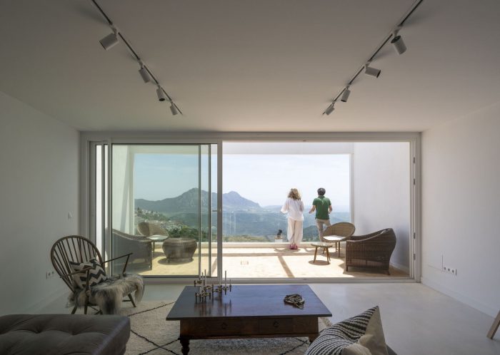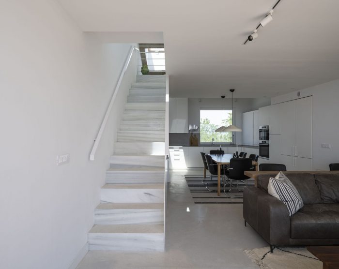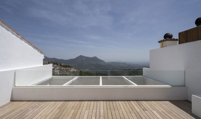 The house is organized according to the views. The upper floor is related to the landscape in a more extensive way, reaching a glimpse of Africa, and is where the living room, dining room, and kitchen are located. On the street floor where the gaze is towards the surrounding landscape are the main bedroom and the guest bedroom which also functions as an access hall. The ground floor located below the street level, generates its own look, much more intimate, as a courtyard house, following the most Arab tradition. On the basement floor, with no views, there is a cinema area taking advantage of the great height of the space and the indirect lighting of the same. All this is topped off with two roof terraces that complete the intense relationship that the house has with the landscape that organizes it.