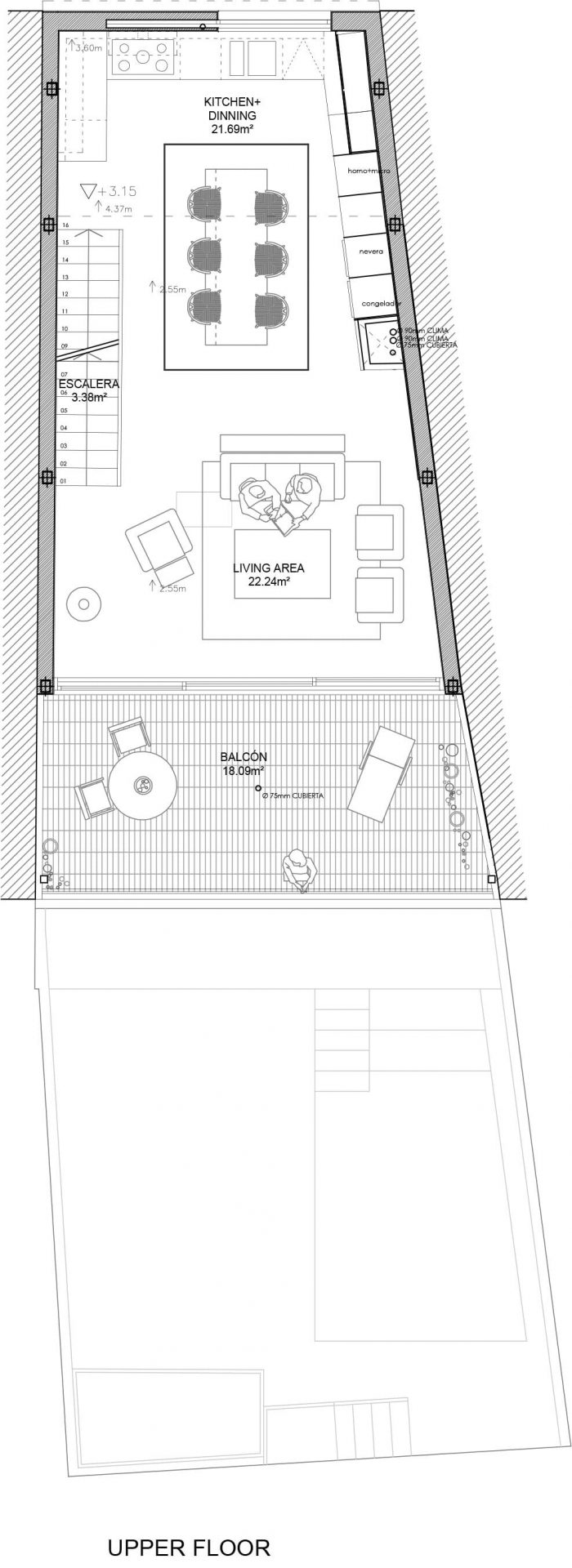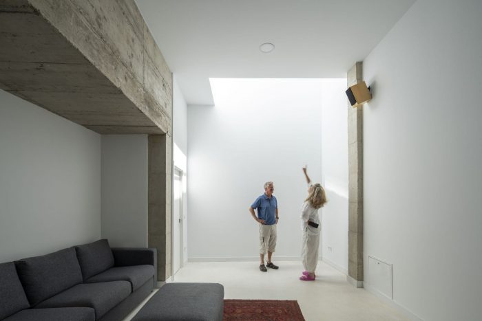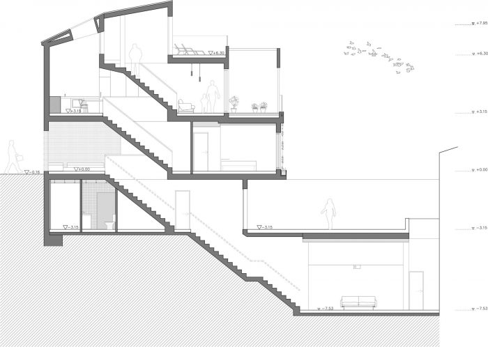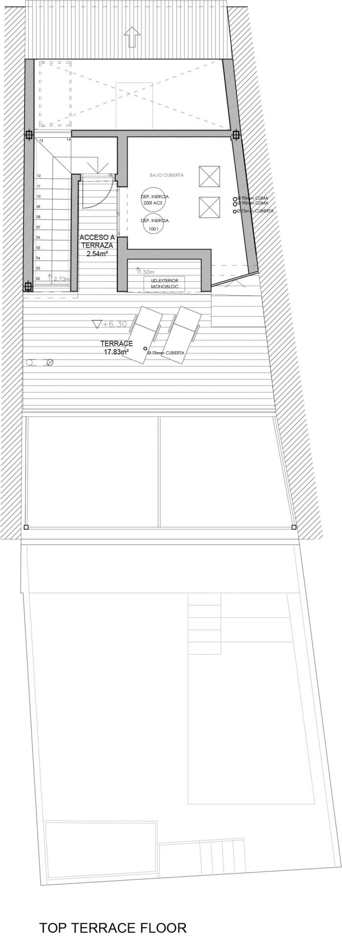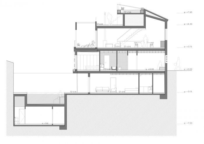 We have an empty plot at the time of starting the project. This site has a very pronounced unevenness. The house accommodates itself to it, trying not to modify the existing topography. For this, the house is adjusted to the existing walls used (facing the street and another intermediate) and the heights.