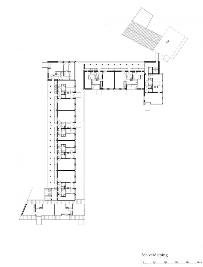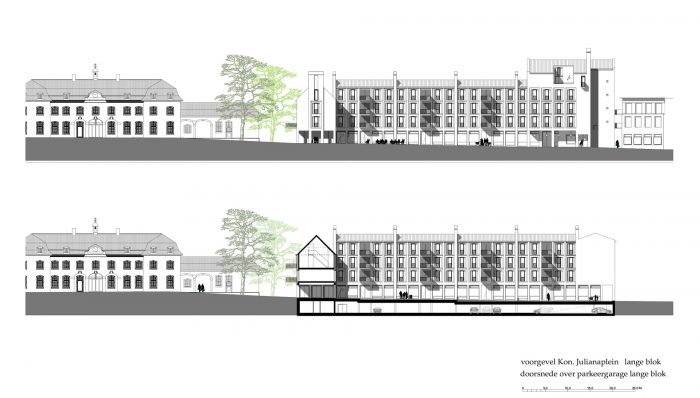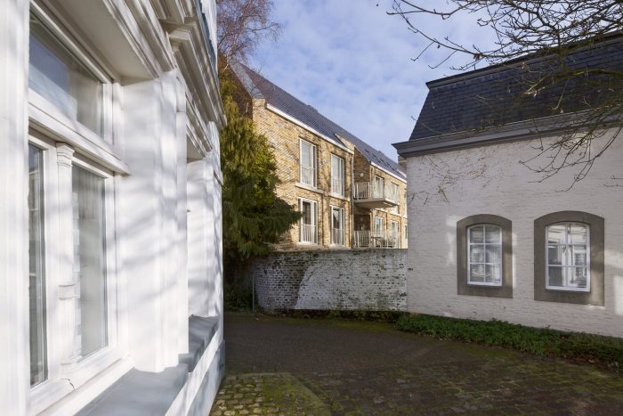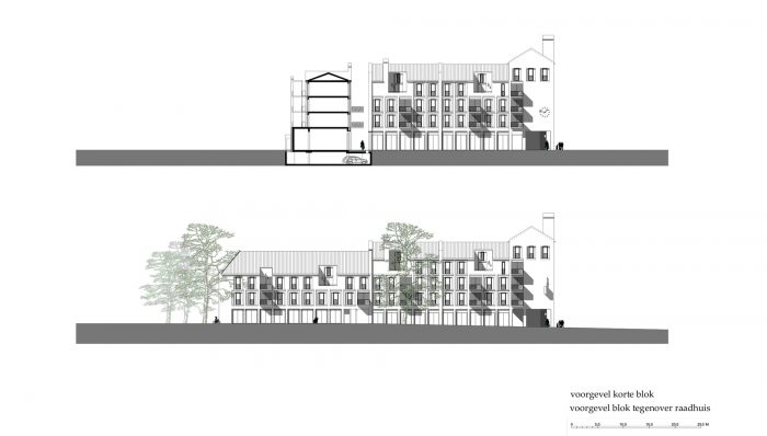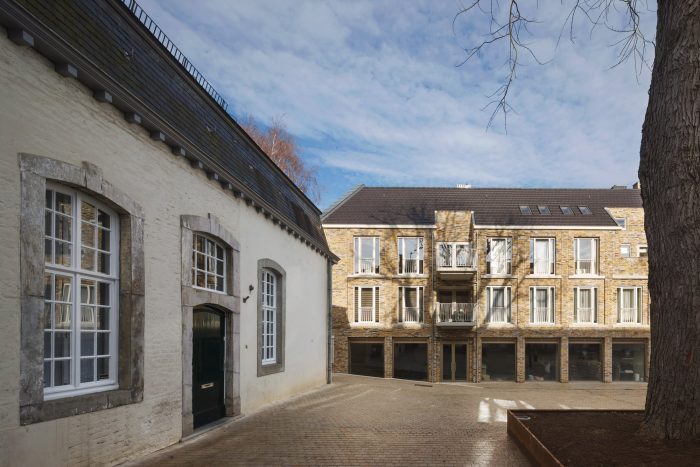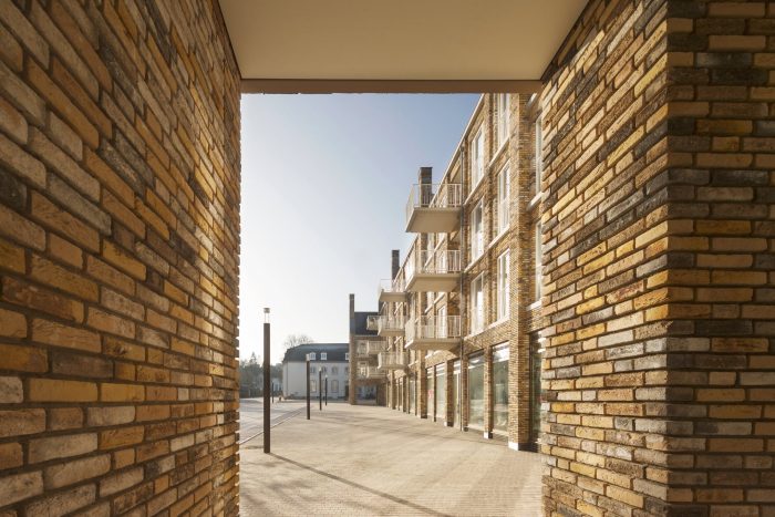 Martens Willems & Humblé Architects designed a social housing residential block with retail within the protected townscape of Vaals. A small border town in The Netherlands. How can a large residential block in the social housing sector, which will partly determine the image of the new Koningin Julianaplein, become a natural part of the protected village scape of Vaals?