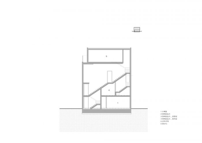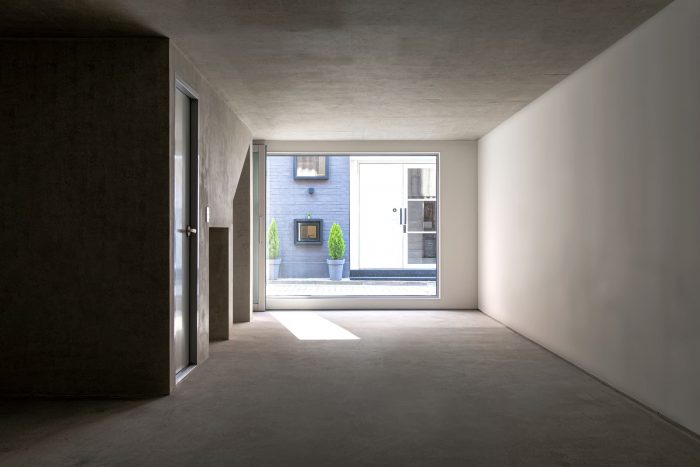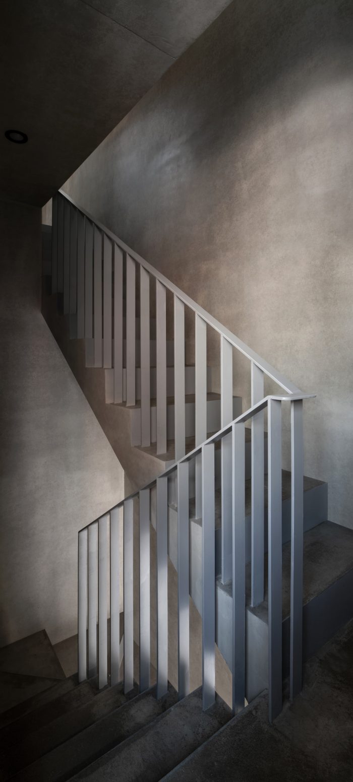 Internally, it was designed to simplify the moving lines most and to maximize the efficiency of space to be occupied by architecture on such a small site. It was also intended for people to feel the rhythm and gentleness of light, which are stemming from the harmony with the exposed concrete, inside the building by crossing darkness and brightness with the passages of light on the moving lines. It is anticipated that the building would play a role of seeds that invoke a new vitality within the aged and dried but autochthonic urban structures, moreover hoped that love toward an art of the family would densely permeate, thereby accomplishing a perfect communion between architecture and people.
