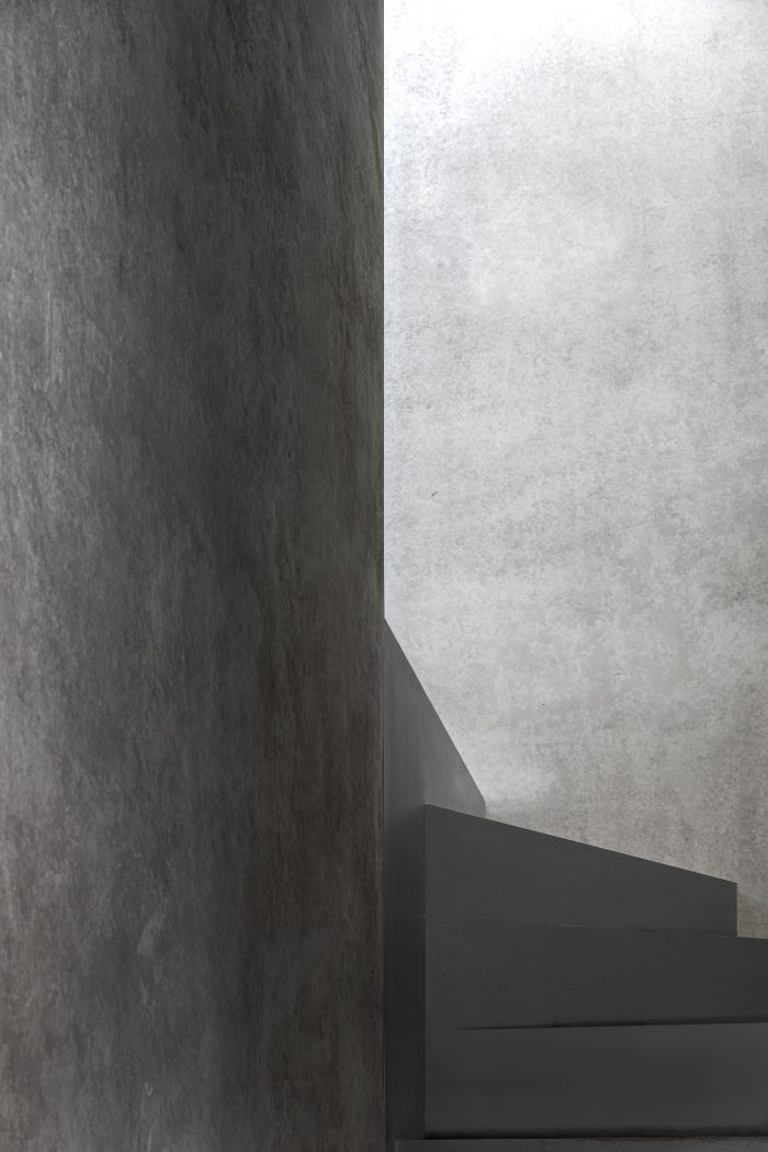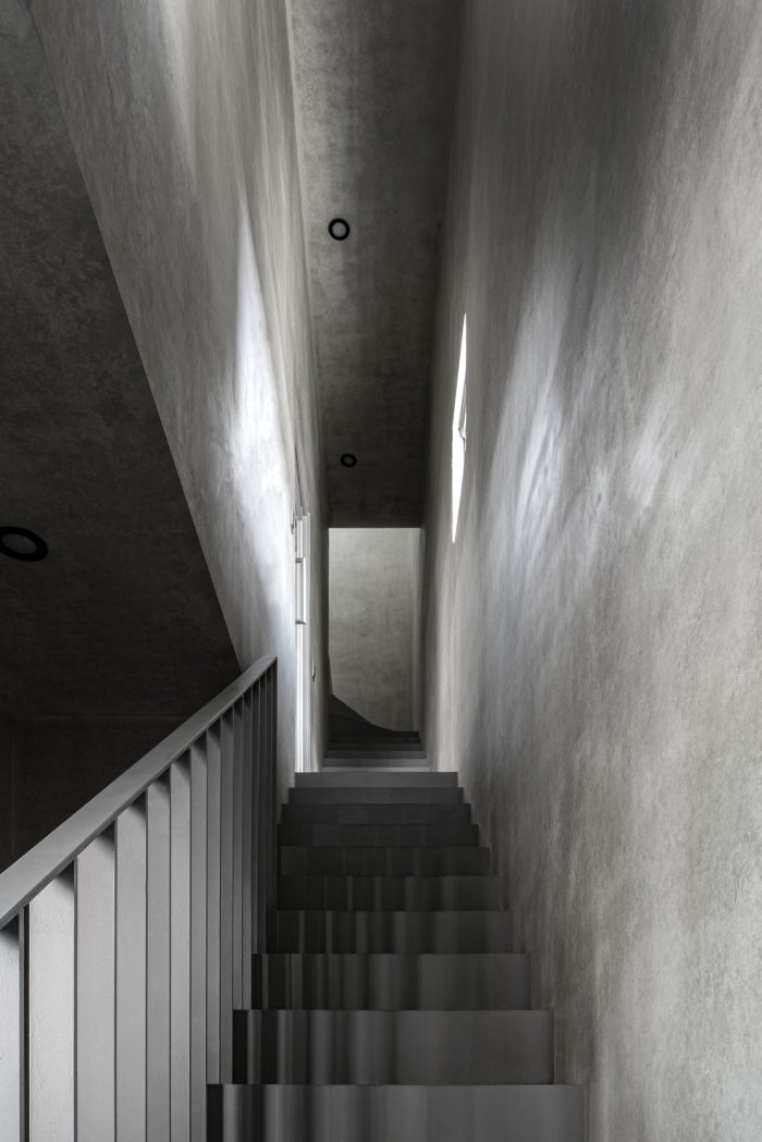 在内部,它的设计是为了最大限度地简化移动的线条,并最大限度地提高建筑在如此小的场地上所占用的空间效率。这也是为了让人们感受到光的节奏和温柔,这源于与裸露的混凝土的和谐,在建筑内部,通过移动线上的光的通道,跨越黑暗和光明。预计该建筑将发挥种子的作用,在老化和干涸但自生自灭的城市结构中唤起新的活力,此外,希望对家庭艺术的爱将密布其中,从而实现建筑和人之间的完美共融。