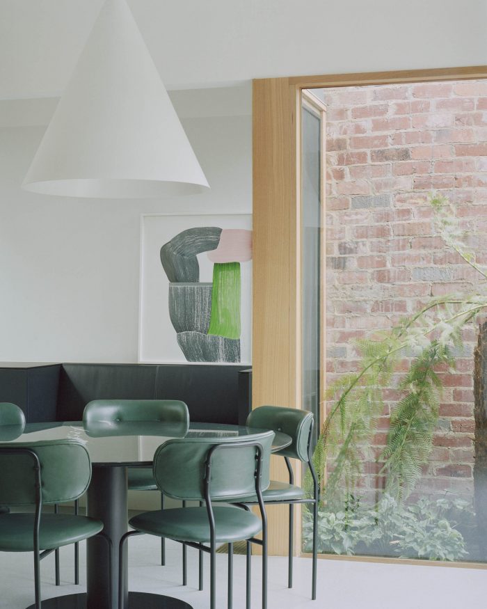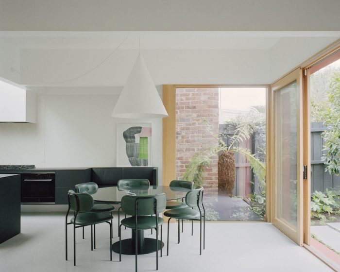 The clients for this project – a couple and their two kids – wanted a single-story house while also retaining as much of their garden as possible on a relatively small block. The design strategy was to remove the old lean-to and add a small 50 m2 extension of connected living spaces, increasing the total footprint of the house by 30 m2, making the most of each space by overlapping functions rather than adding a new room for each.