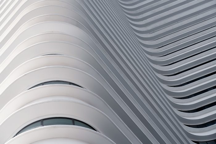 The project is defined by the sculptural force of its façades. Profiled concrete strips run in gentle curves around the buildings, underlining their object-like autonomy. The outer layer takes the form of an in situ cast concrete façade, the glass façades set back up to two metres and creating deep terraces. The closed parts of the inner façade are clad with black glass so that they recede behind the light concrete strips like the windows.