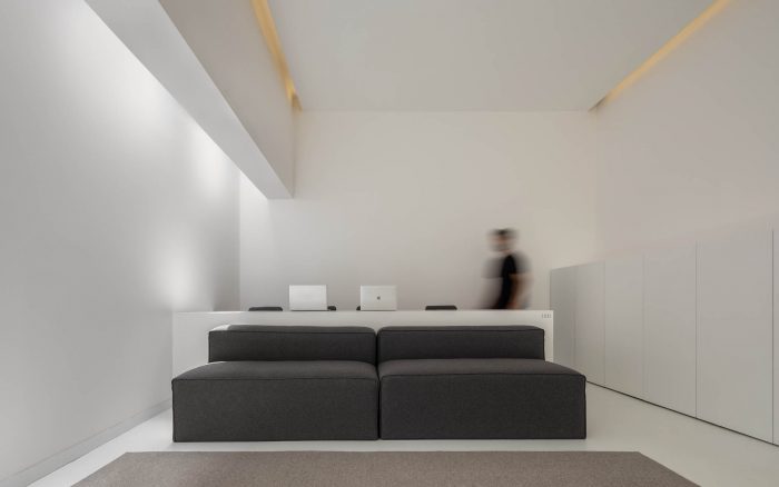 接下来是理论工作区。这是一个非常特别的空间,因为它完全与外界隔绝。它以天顶的方式进行照明和通风,使其具有神圣的品质......几乎像一个教堂。它有一个非常内省的性质,这吸引了我们,因为冥想是我们在创作过程中使用的一个非常重要的工具。